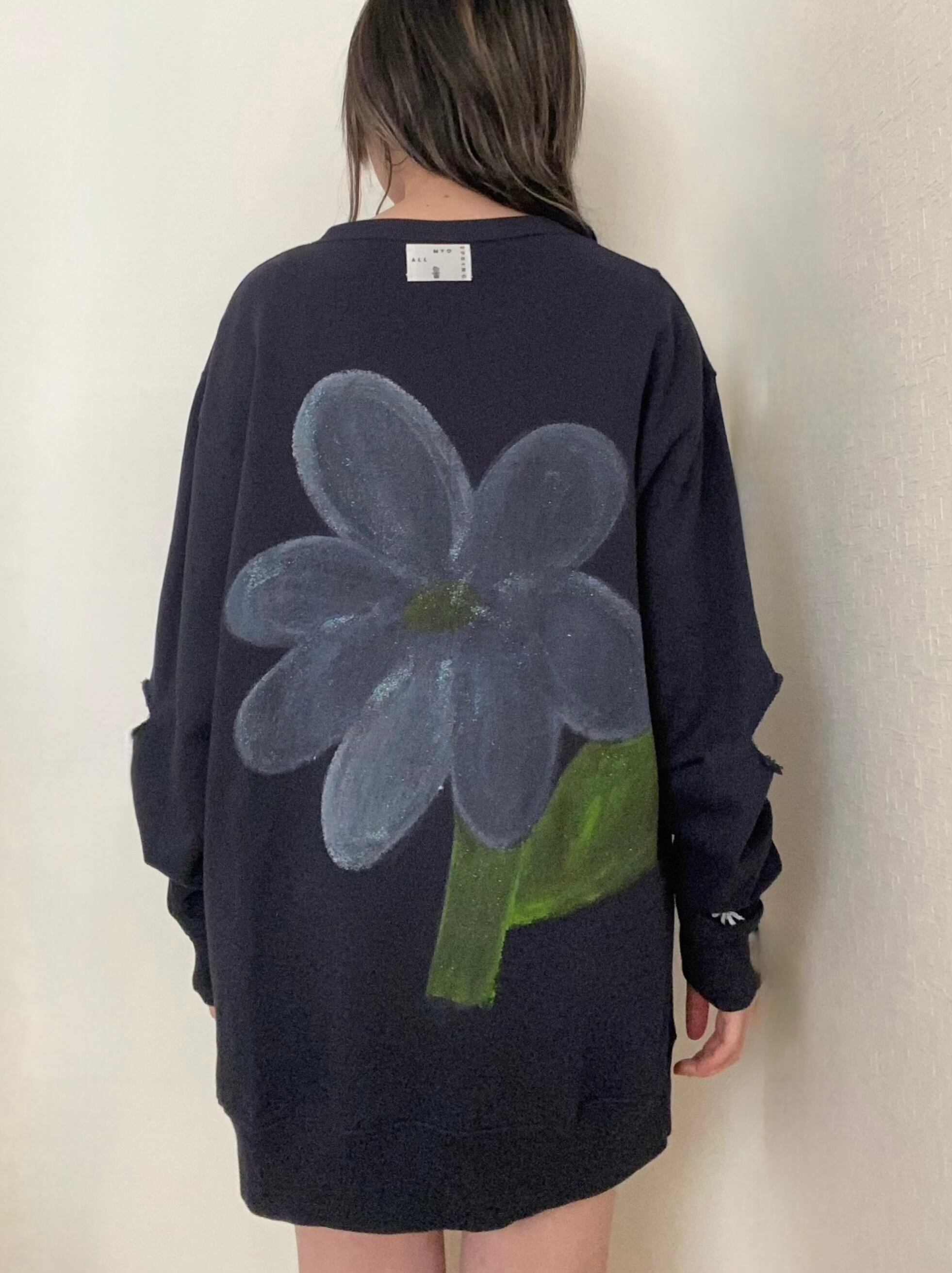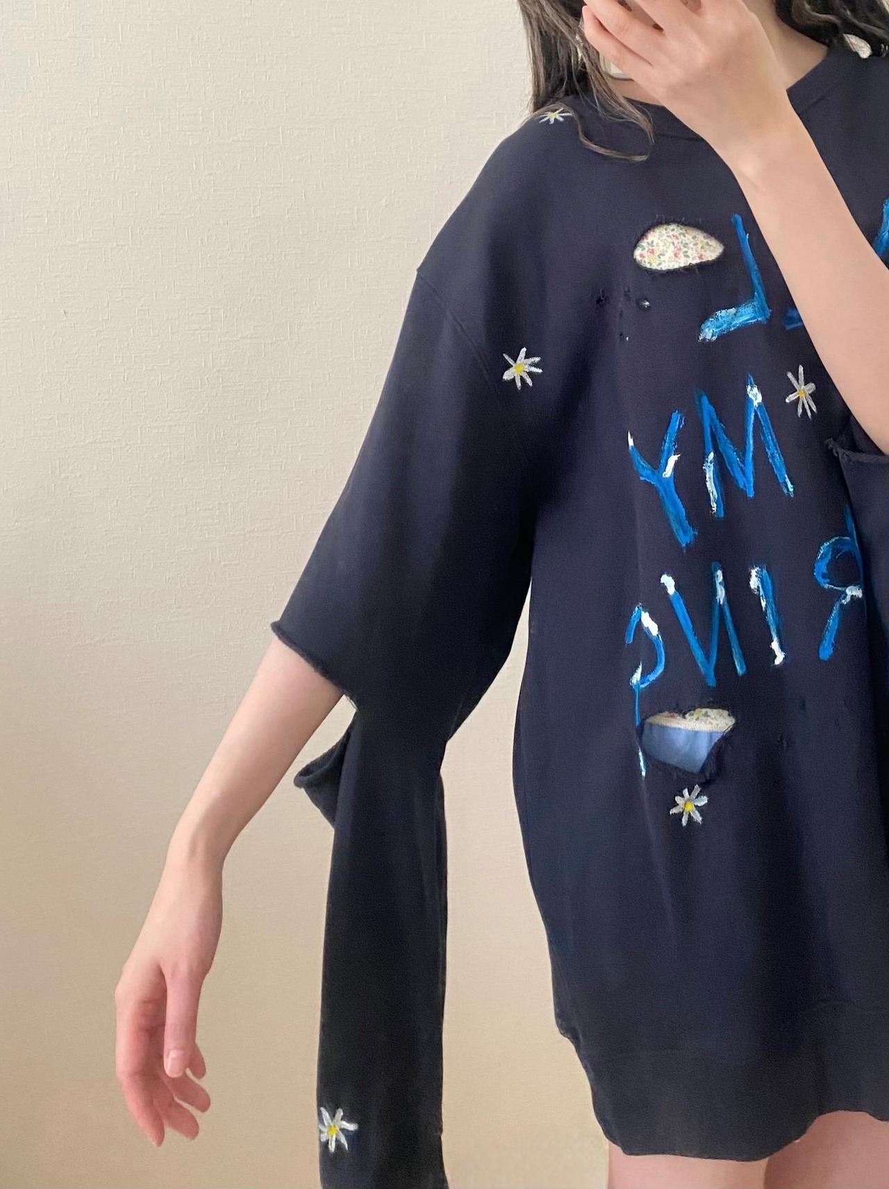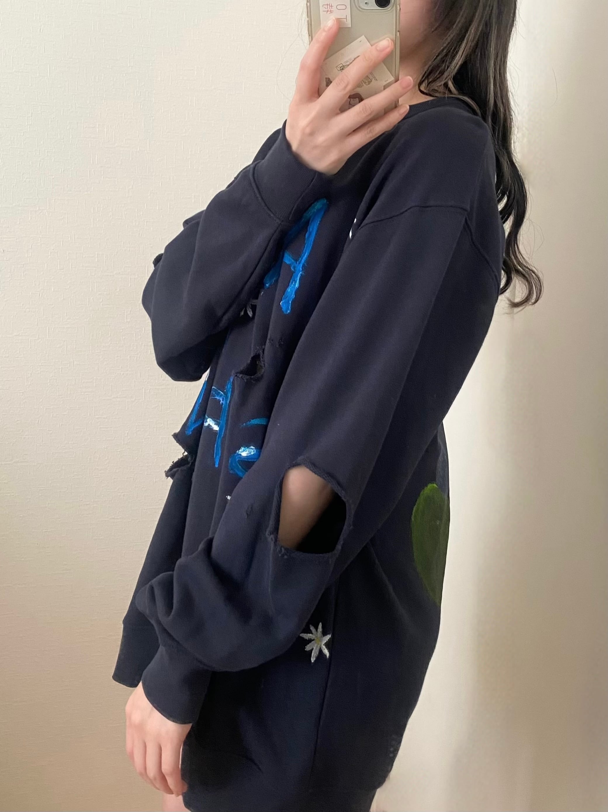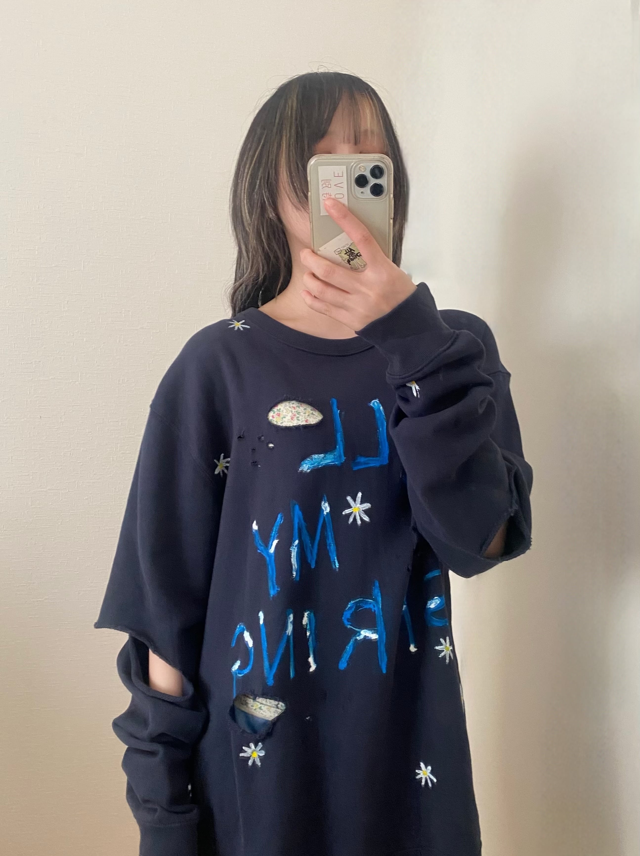 bigサイズのスウェットに手描きのペイントを加えた一点もの.