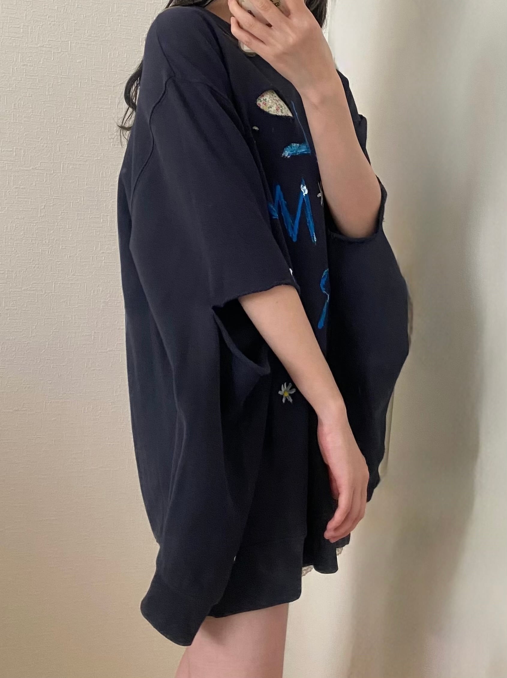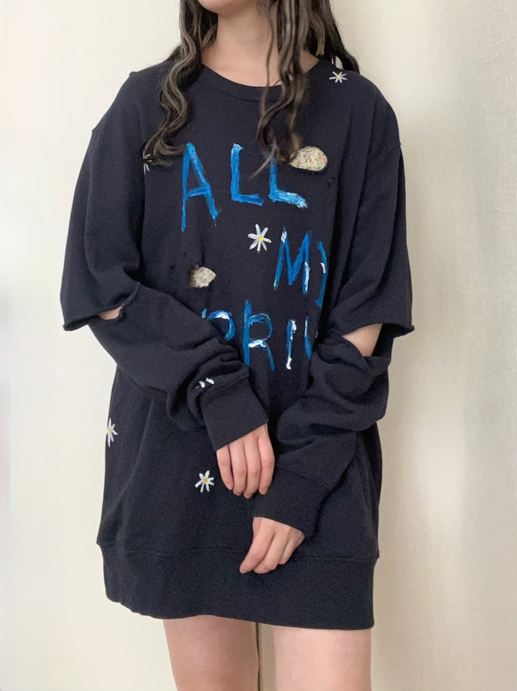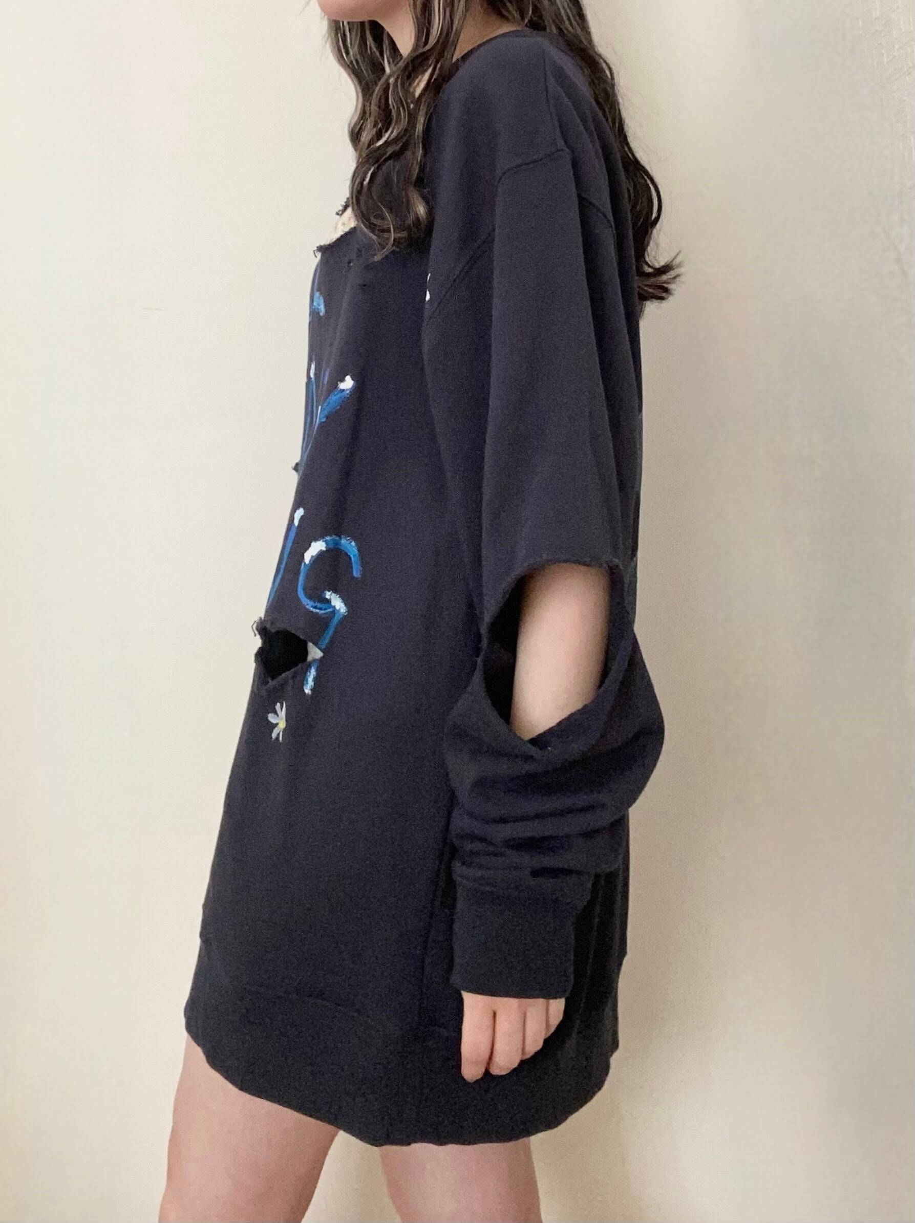 bigサイズのスウェットに手描きのペイントを加えた一点もの.