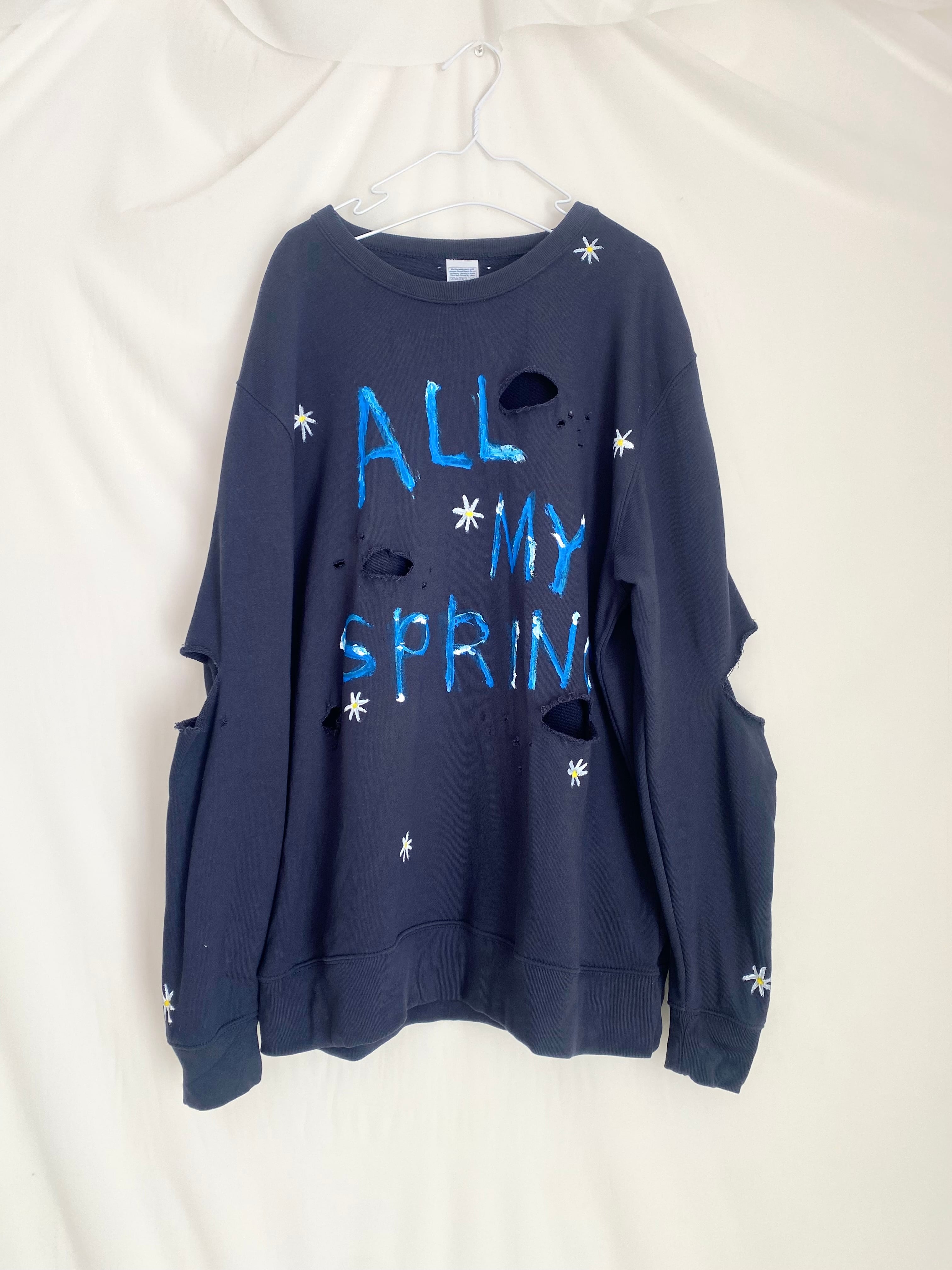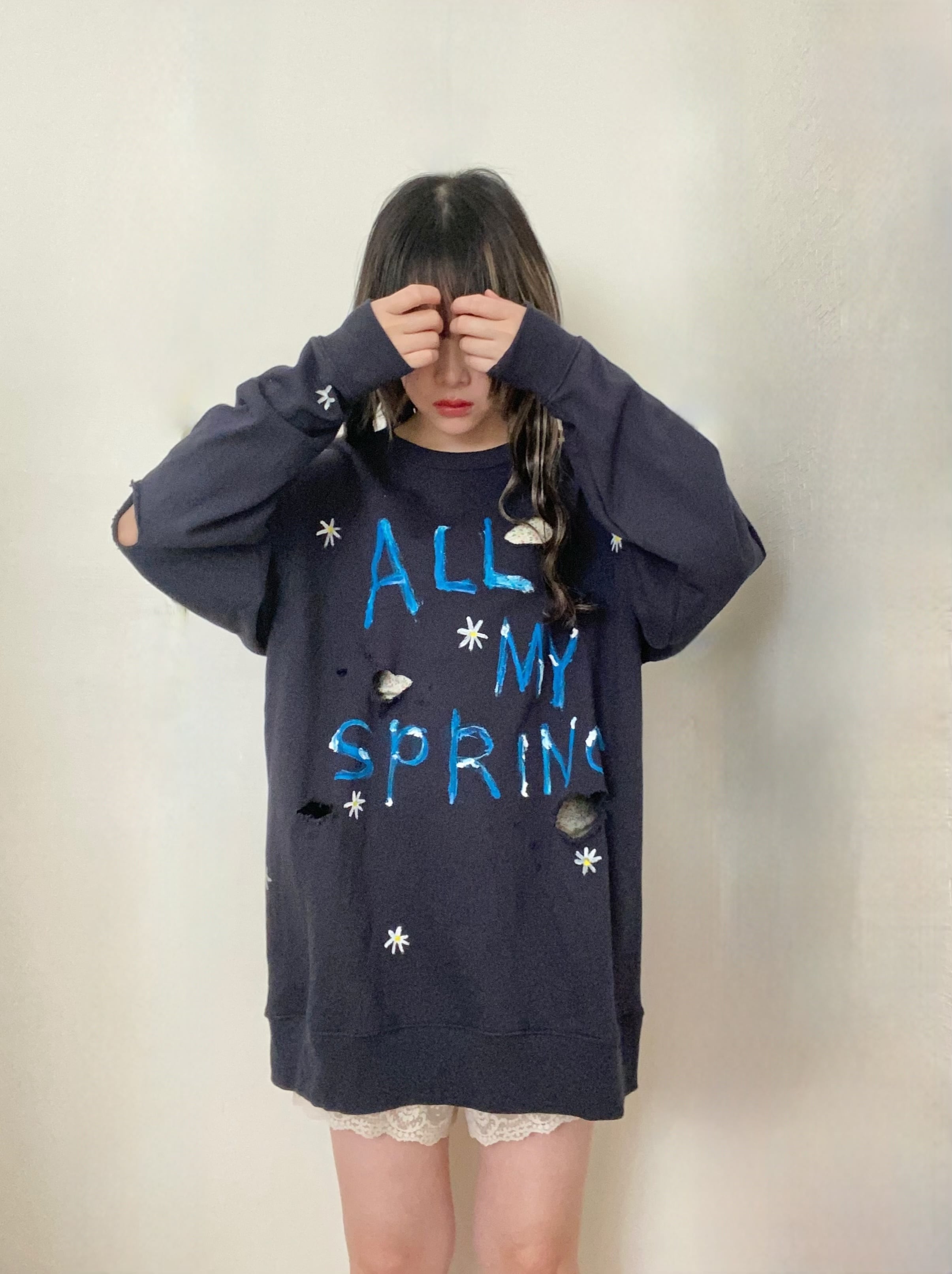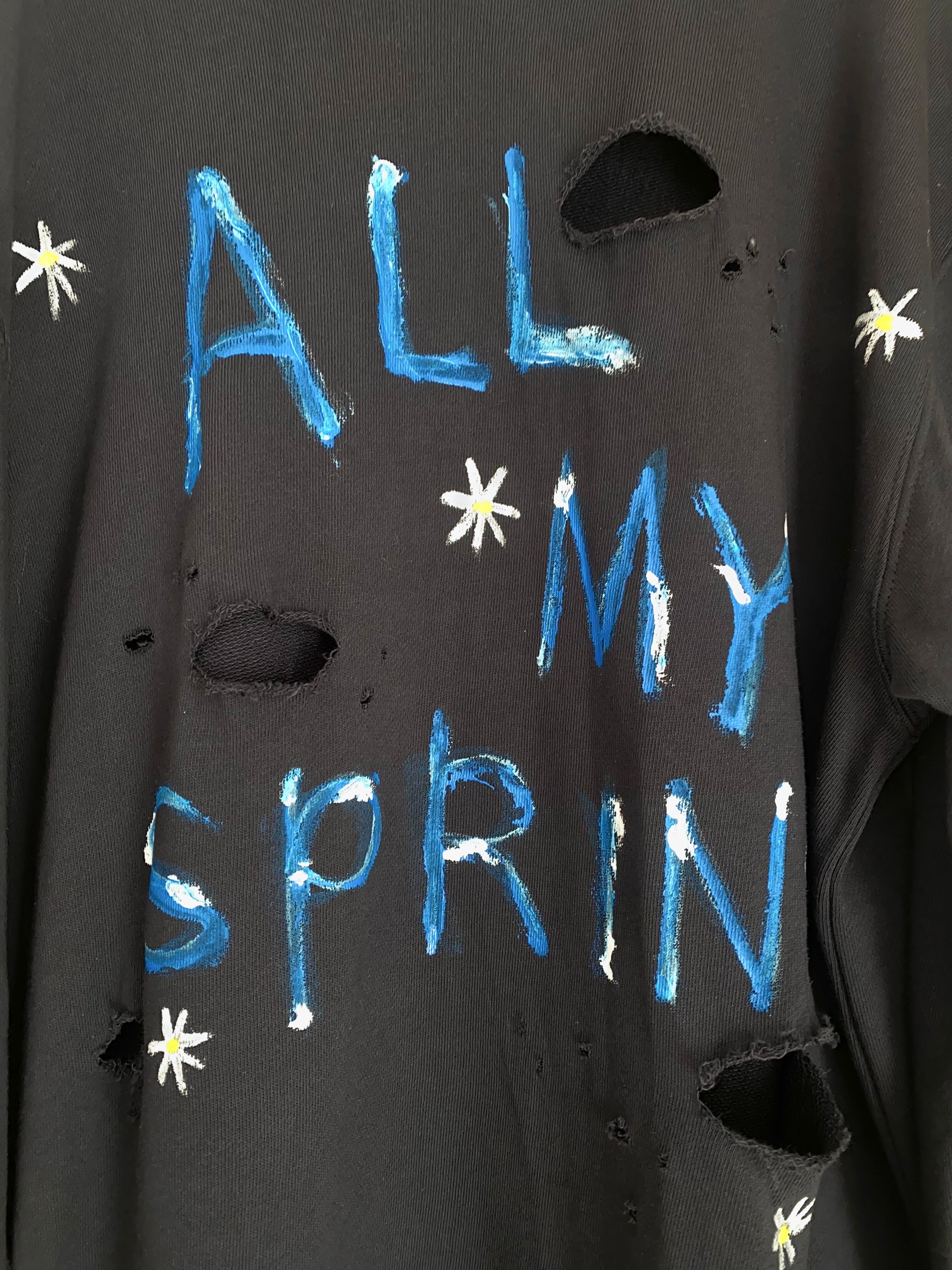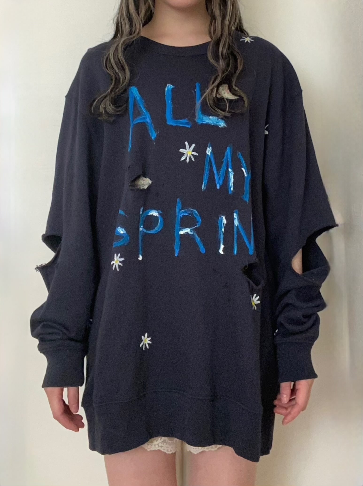 bigサイズのスウェットに手描きのペイントを加えた一点もの.