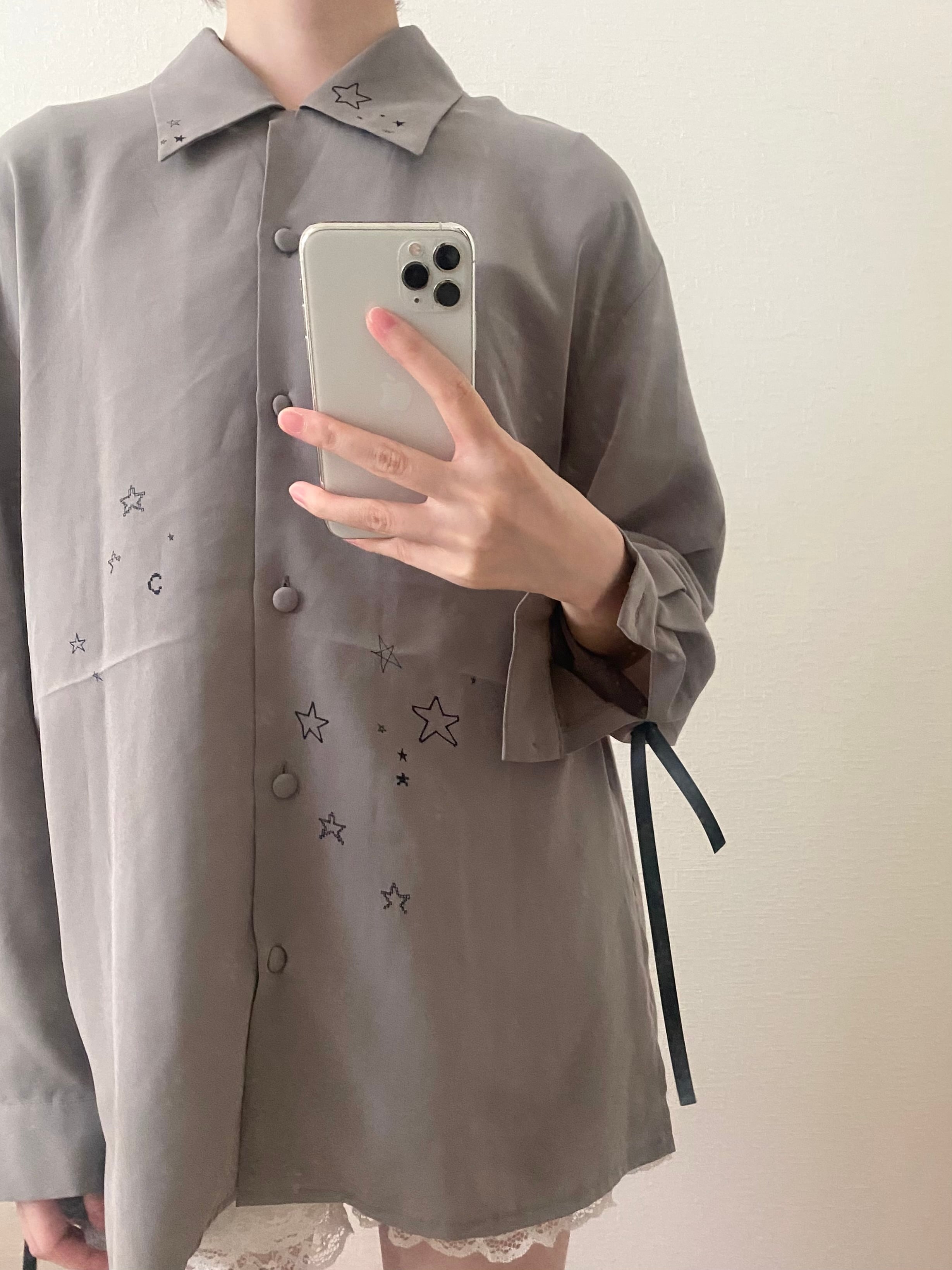 古着のブラウスに手描きのペイントをほどこした一点もの.
