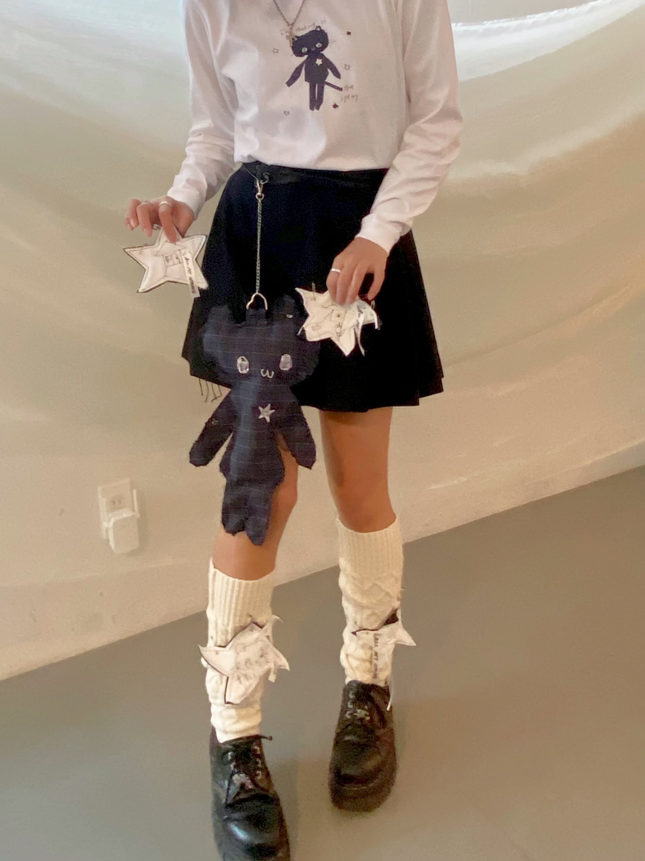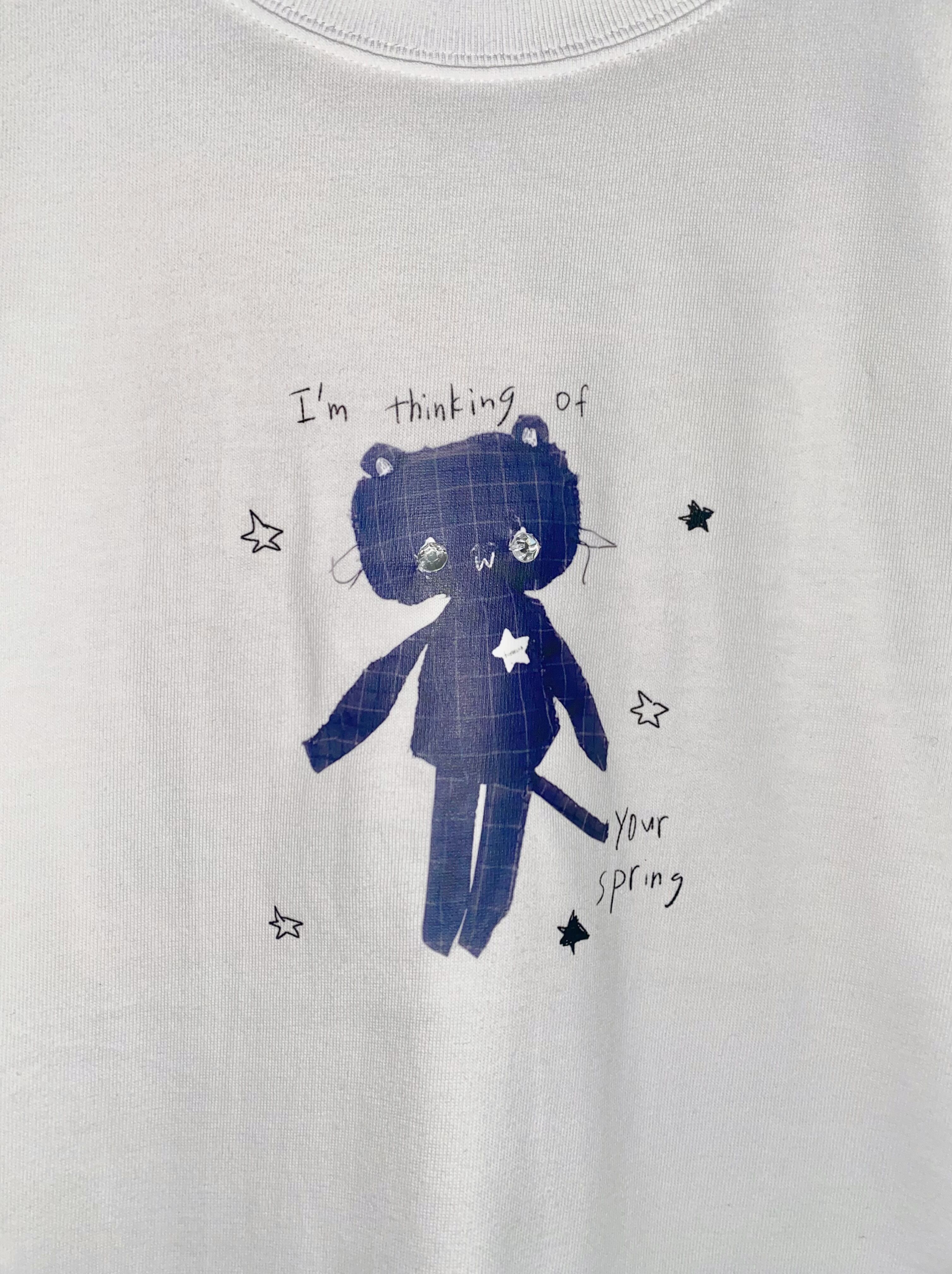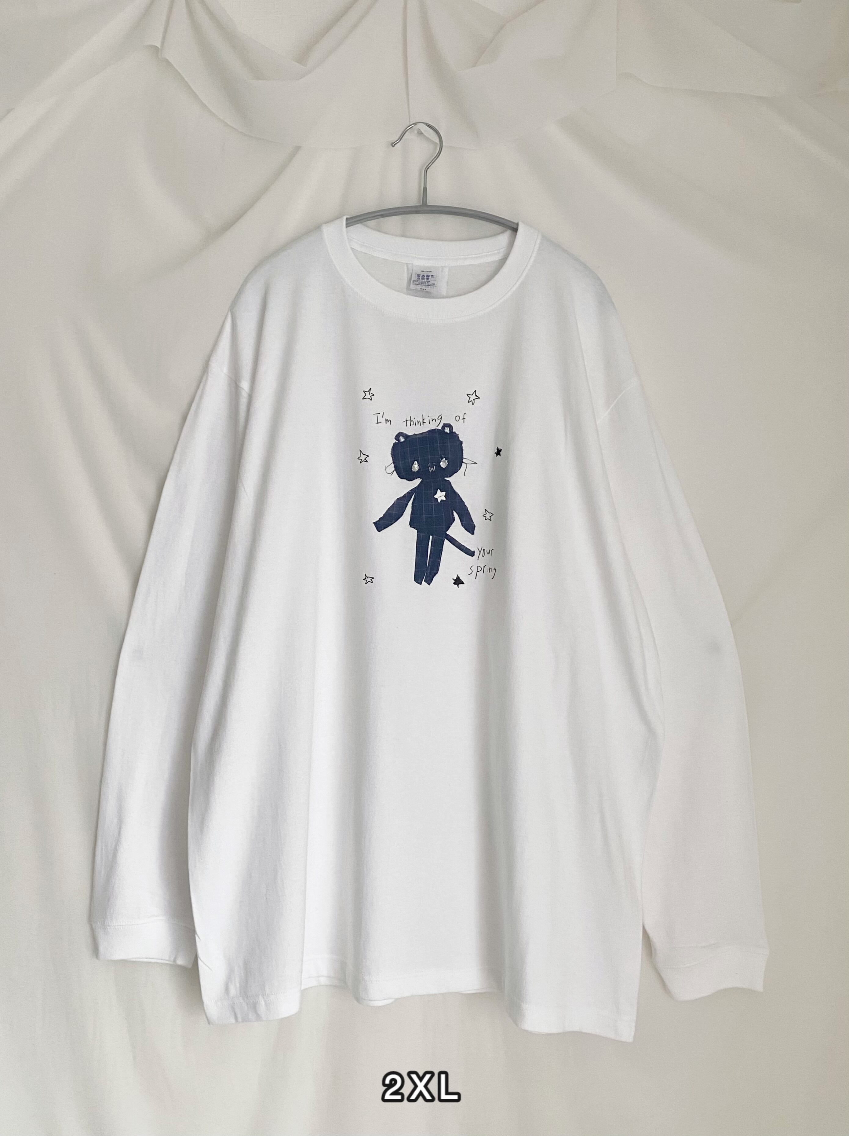 ヒョウちゃんのぬいぐるみがプリントされたロンtee.目はラインストーンできらきらしています.