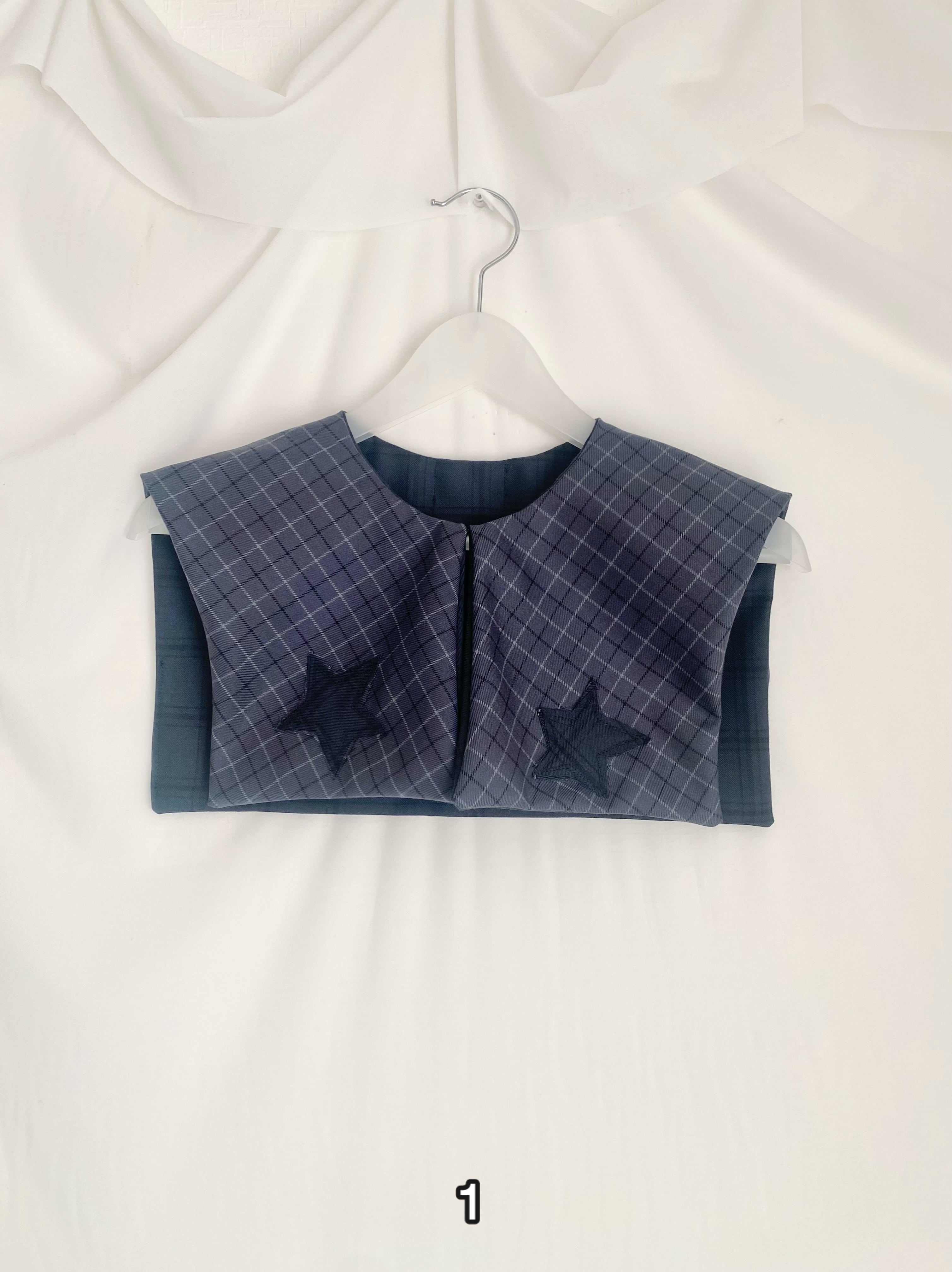 制服みたいなウール混の生地で仕立てたセーラーつけ襟です。