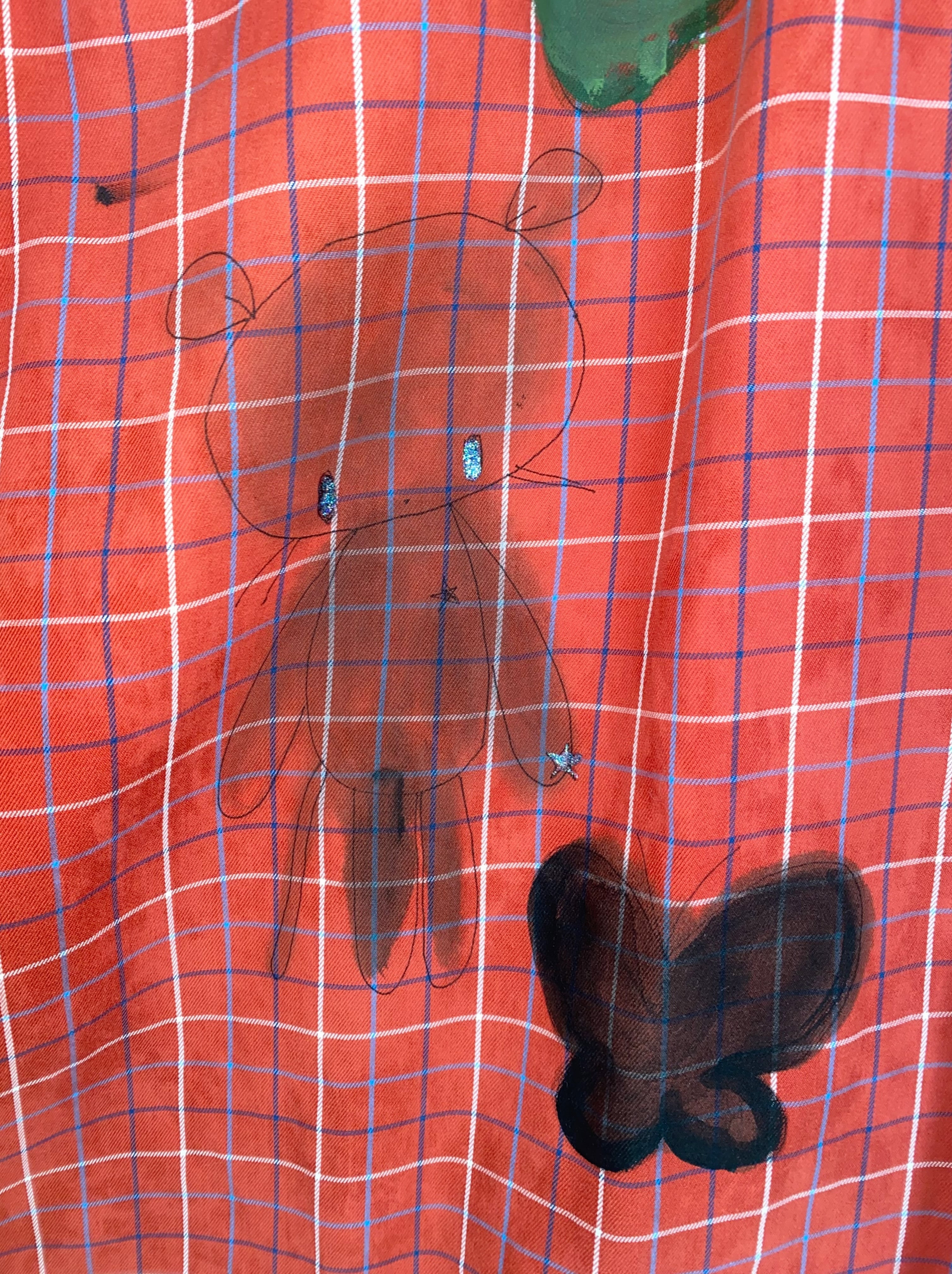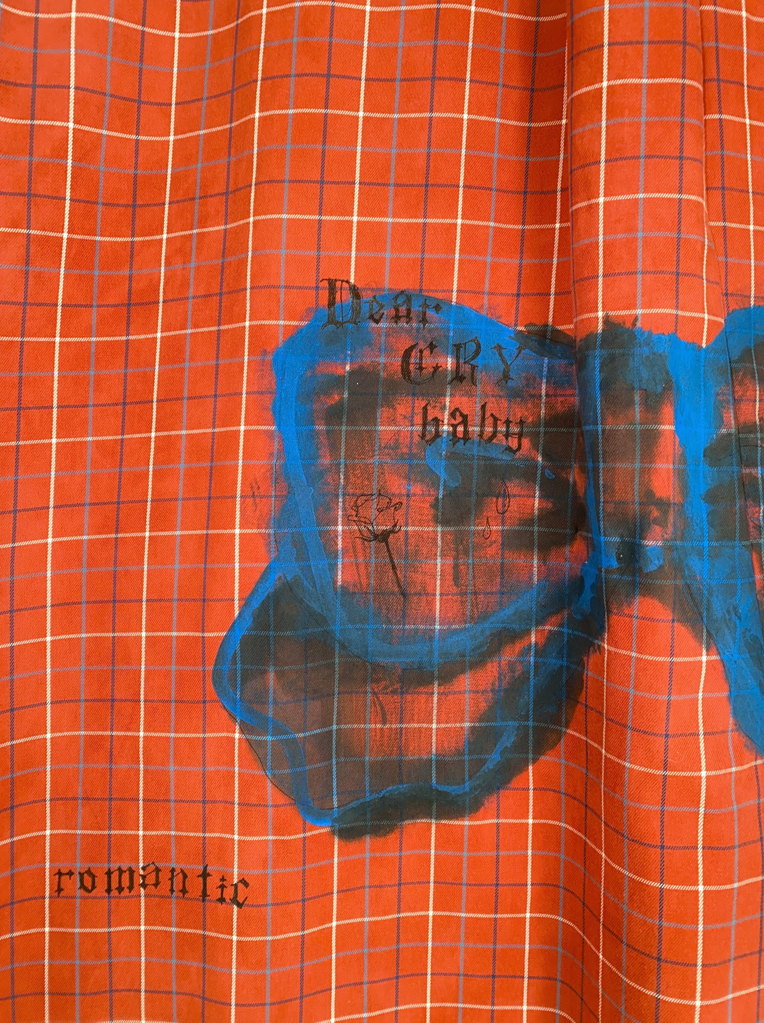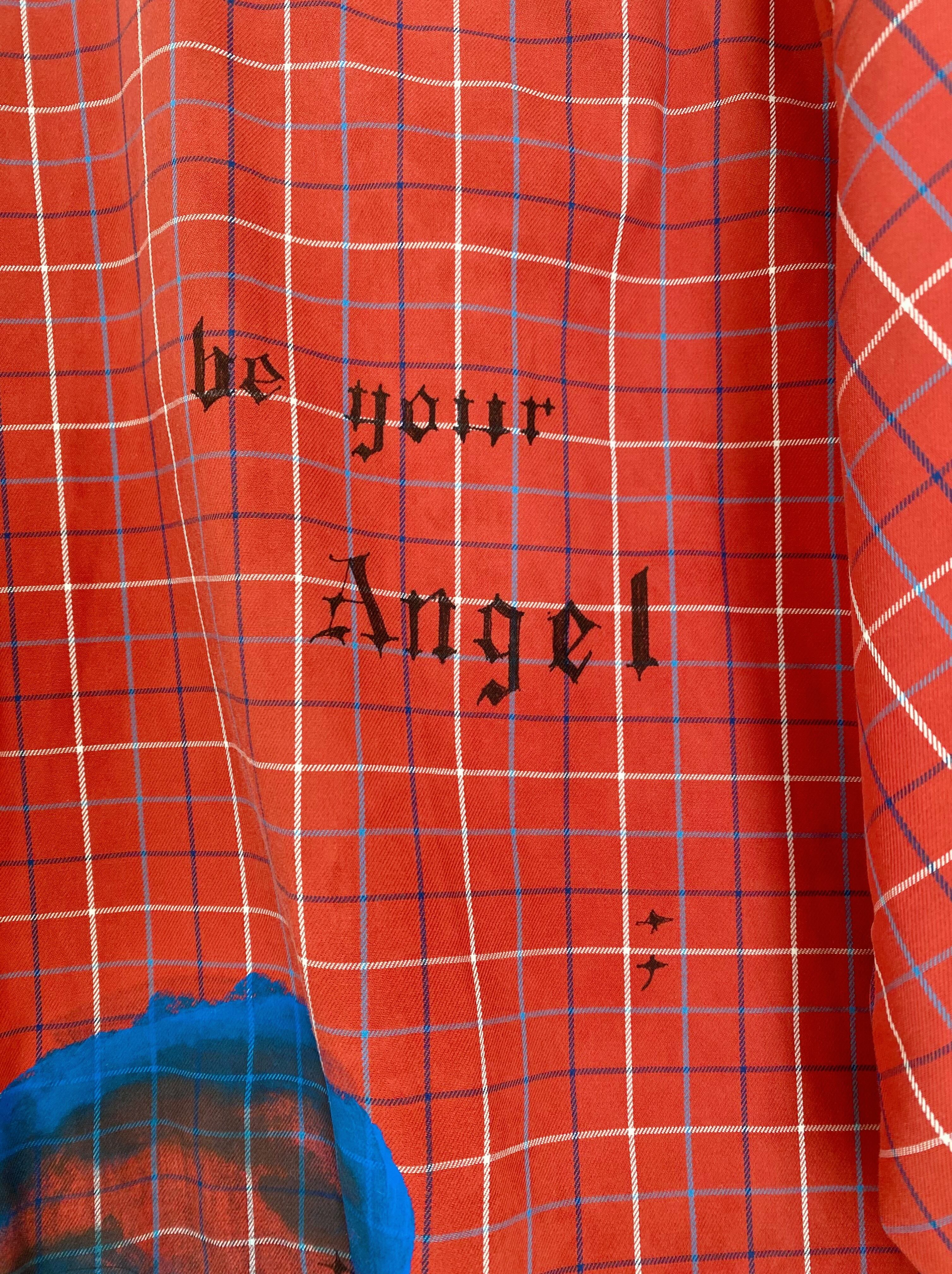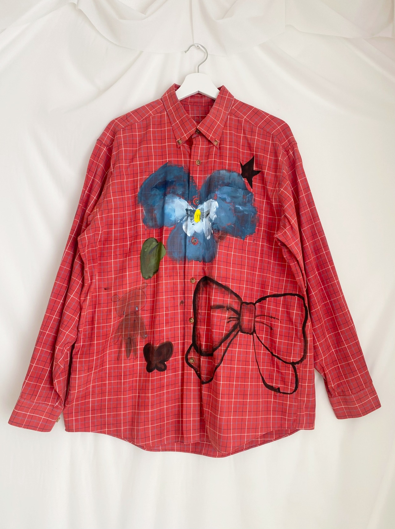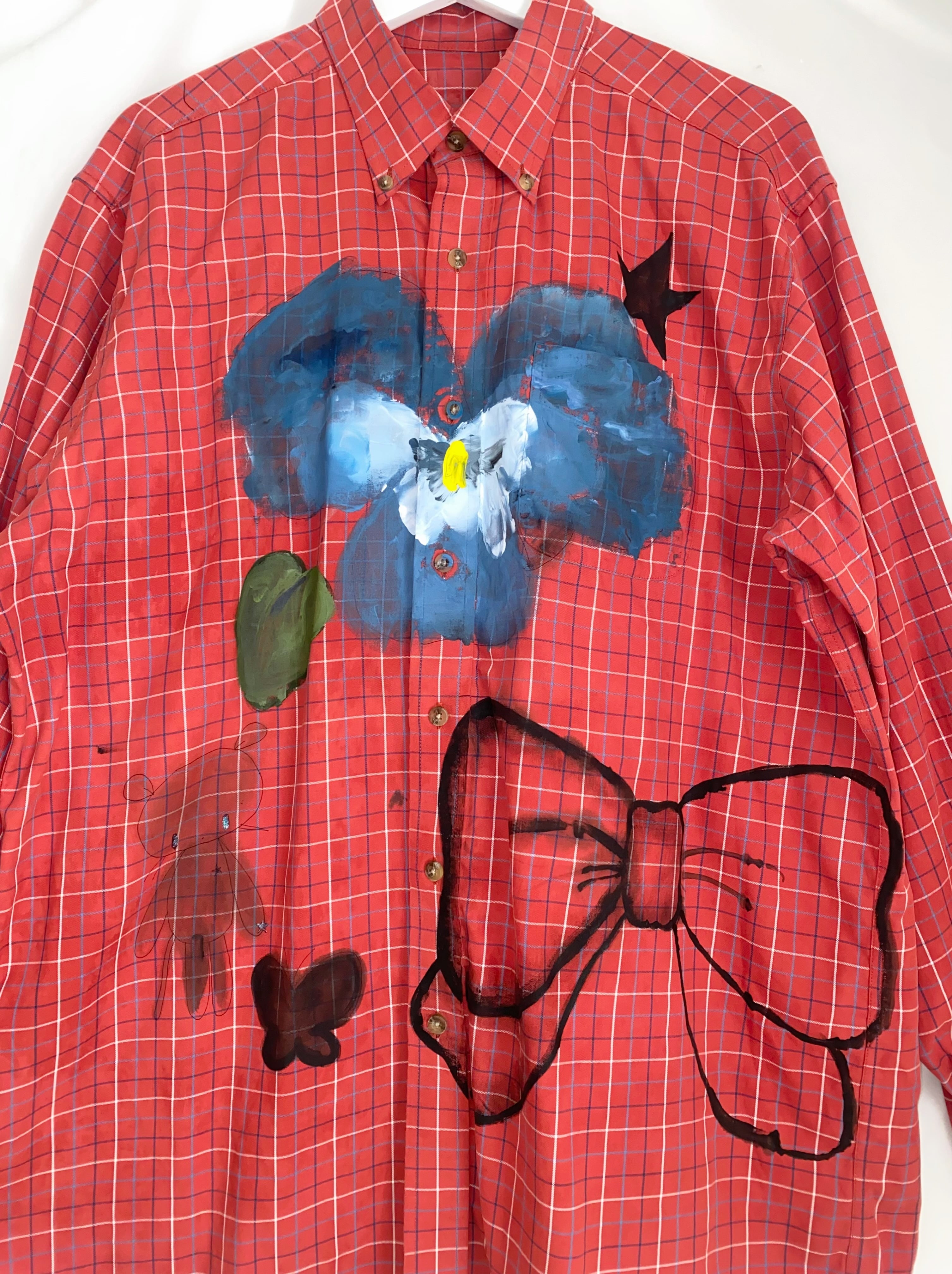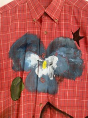 usedのシャツにペイントをほどこしたリメイク一点もの。