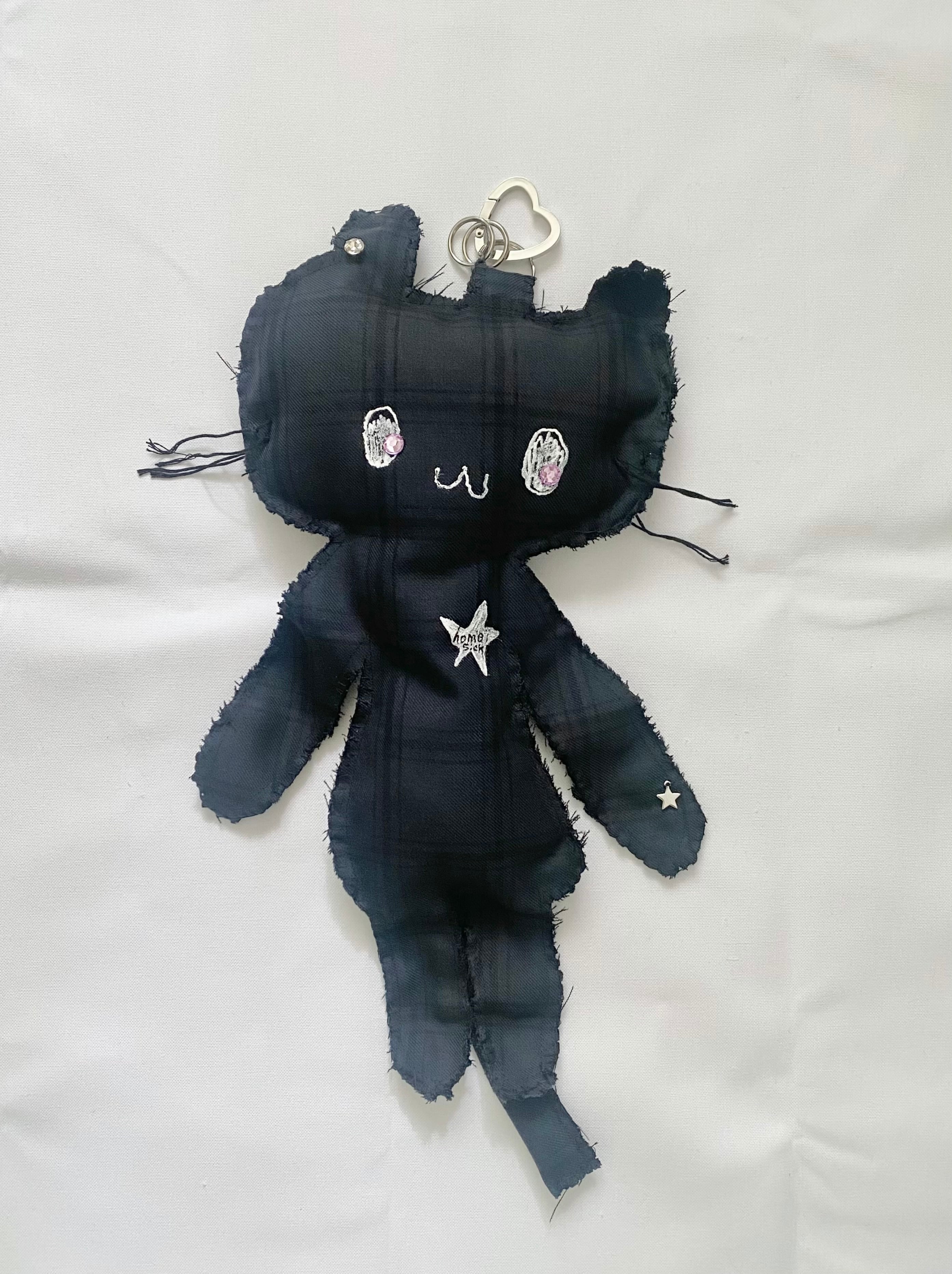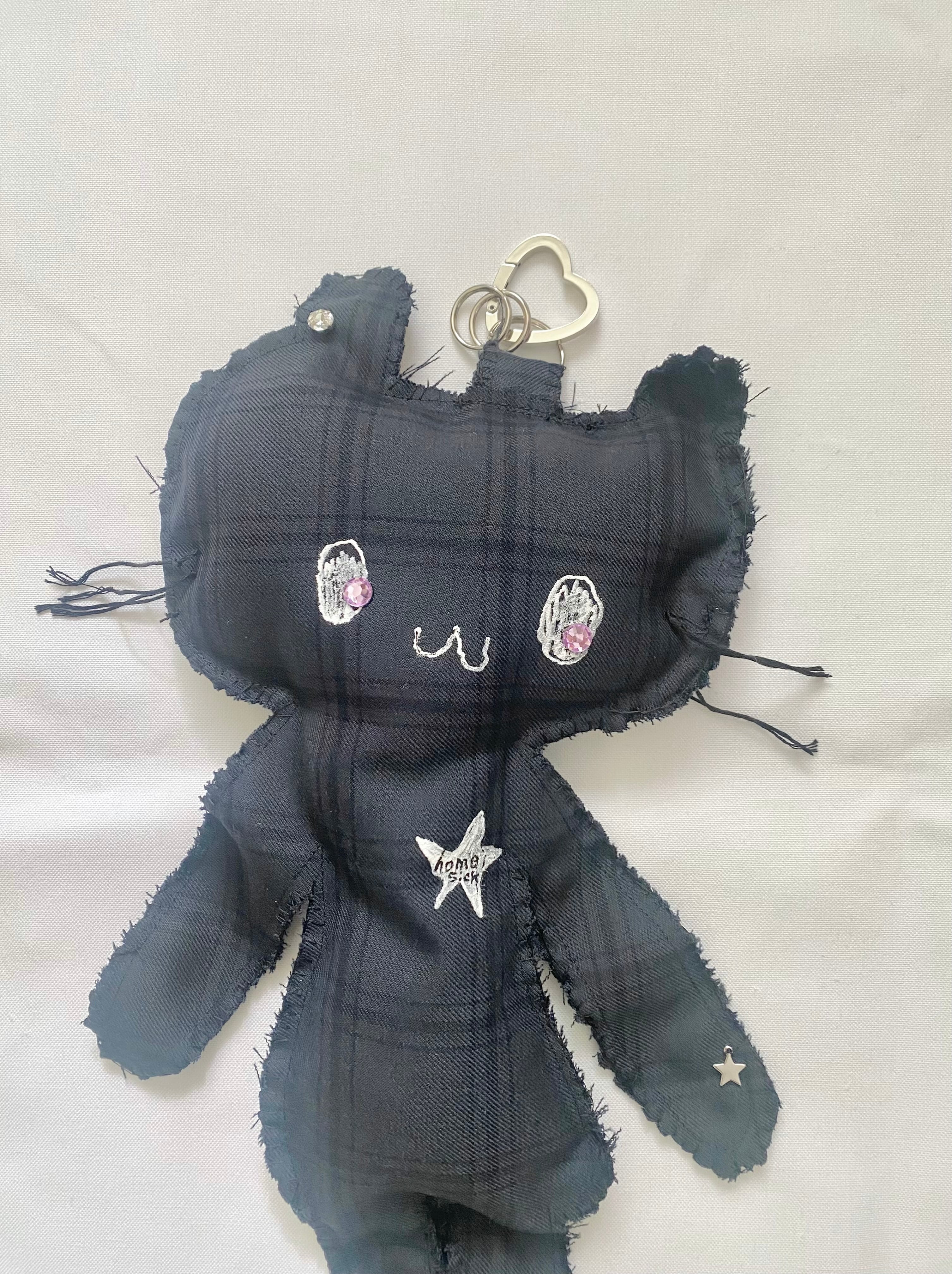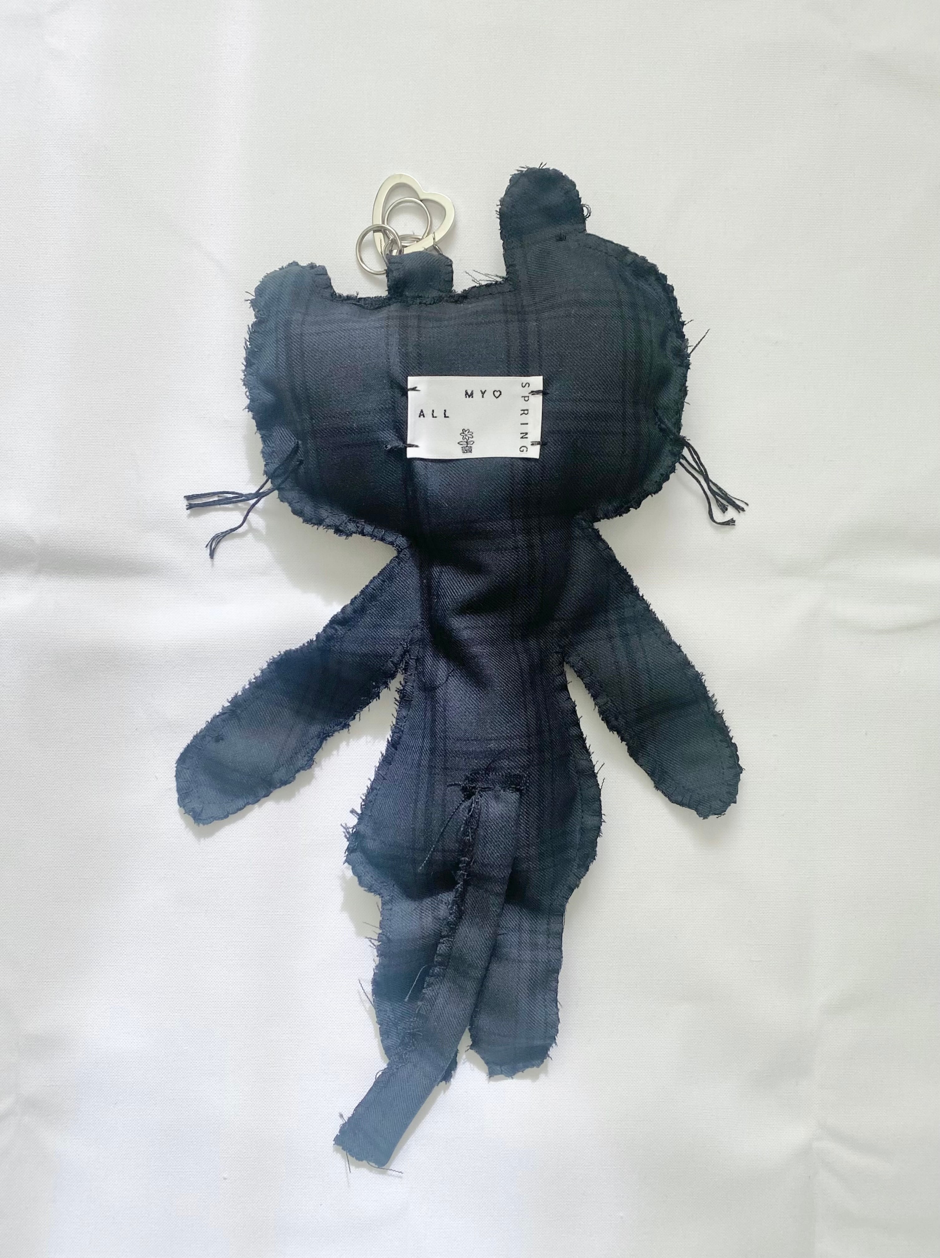 制服、スーツみたいな生地のハギレでつくった大きなひょうちゃんのキーリング.