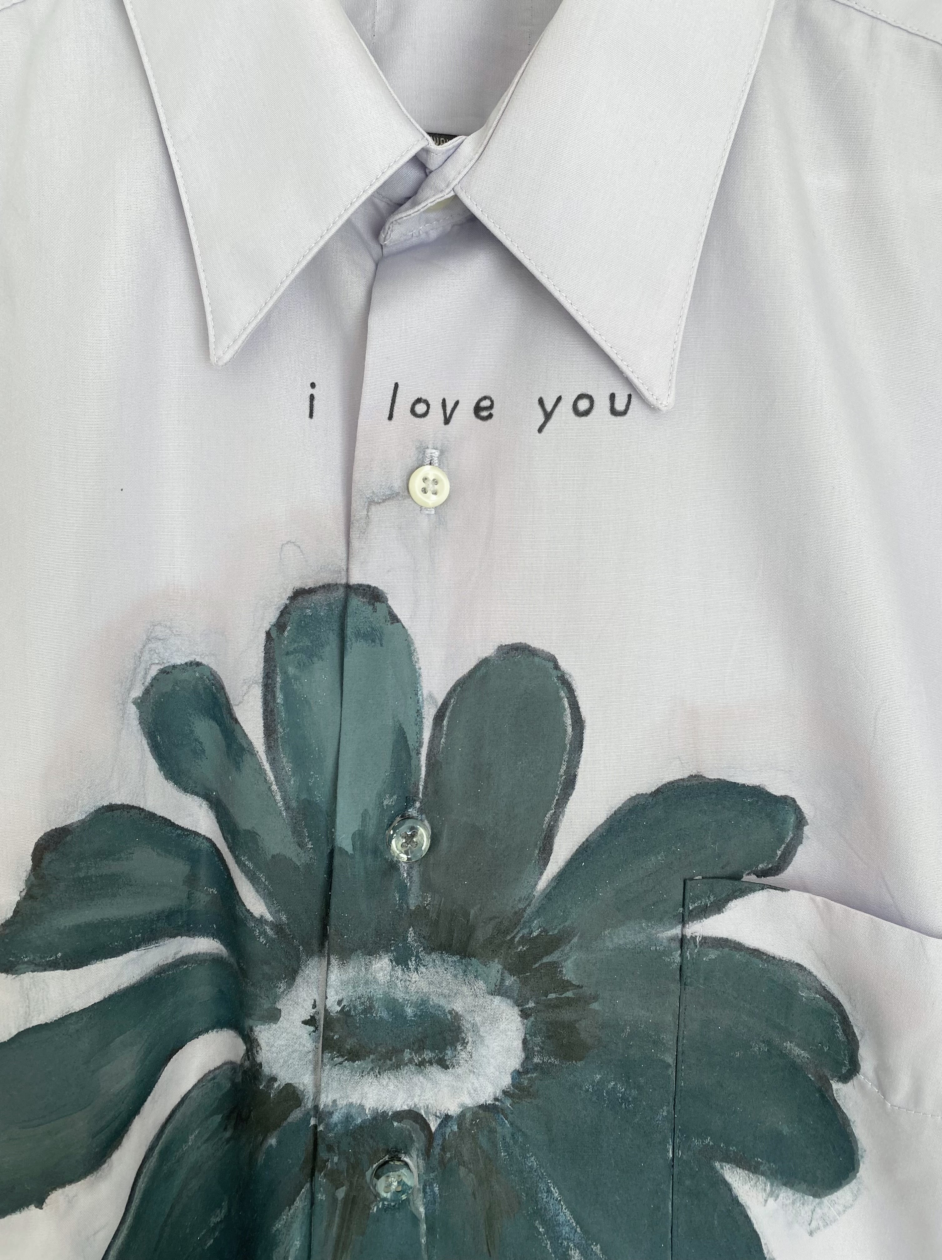 usedのシャツにペイントをほどこしたリメイク一点もの。