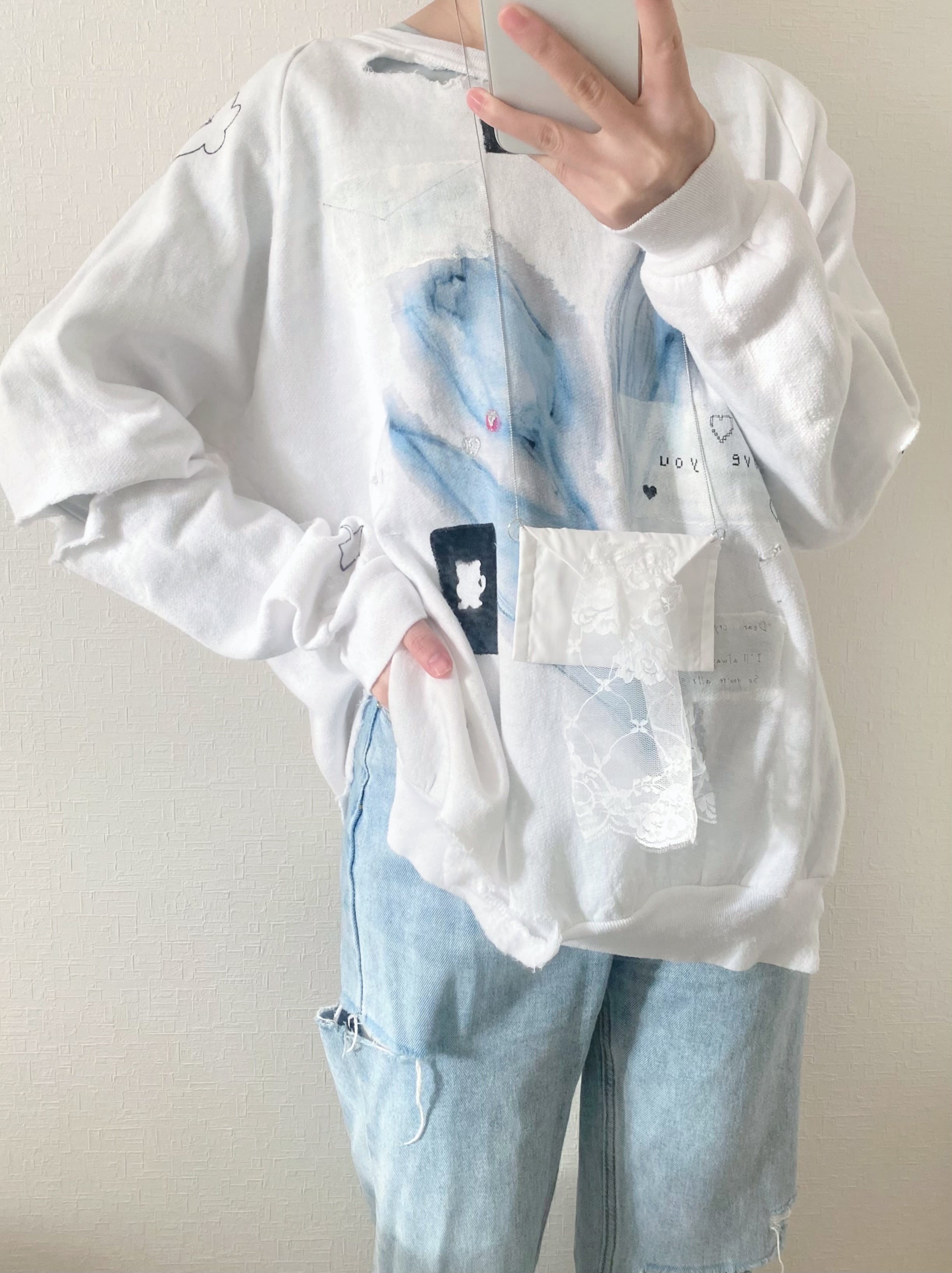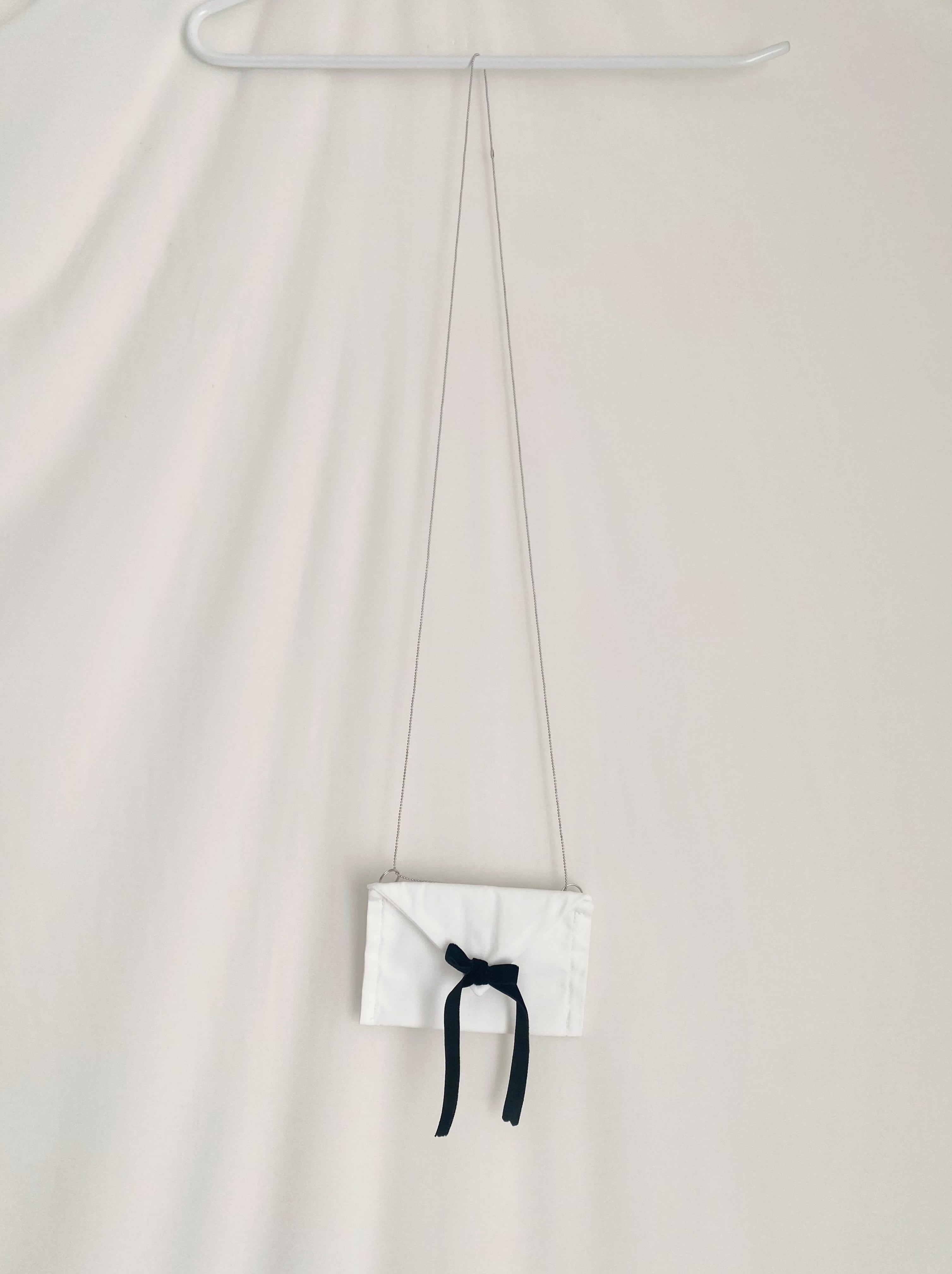 長めのチェーンでおへそのあたりにモチーフがきます.