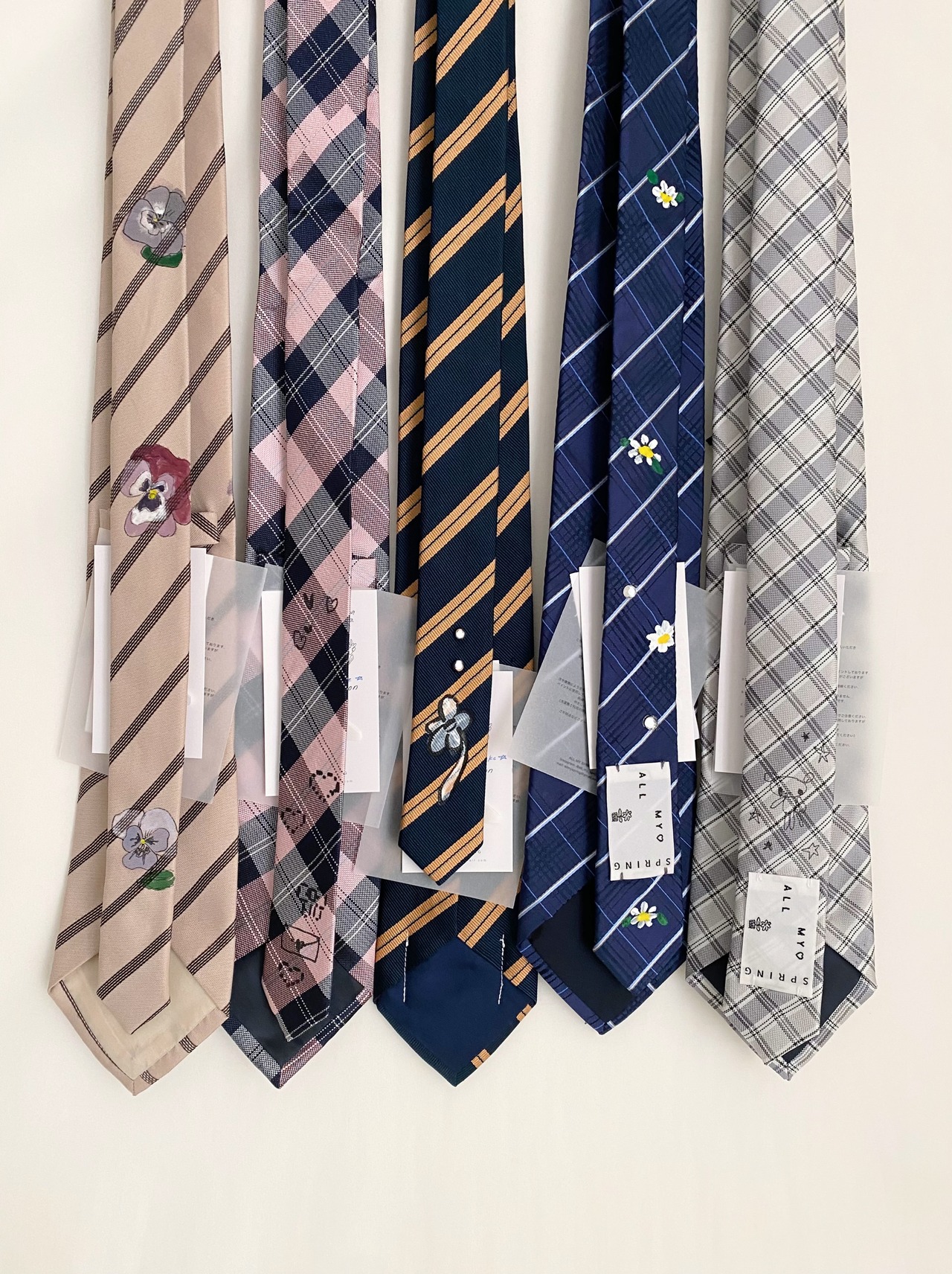 この販売ページは画像bのネイビーのネクタイにマーガレットを描いたデザインのものです。