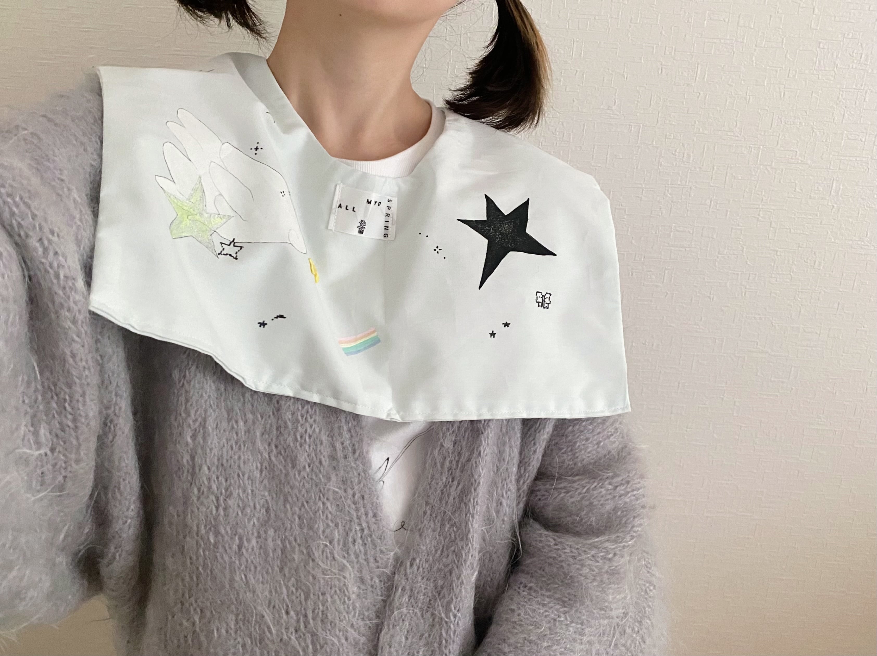 あたまのなかで色々混ざった情報を描いてみた一点もののつけえりです。