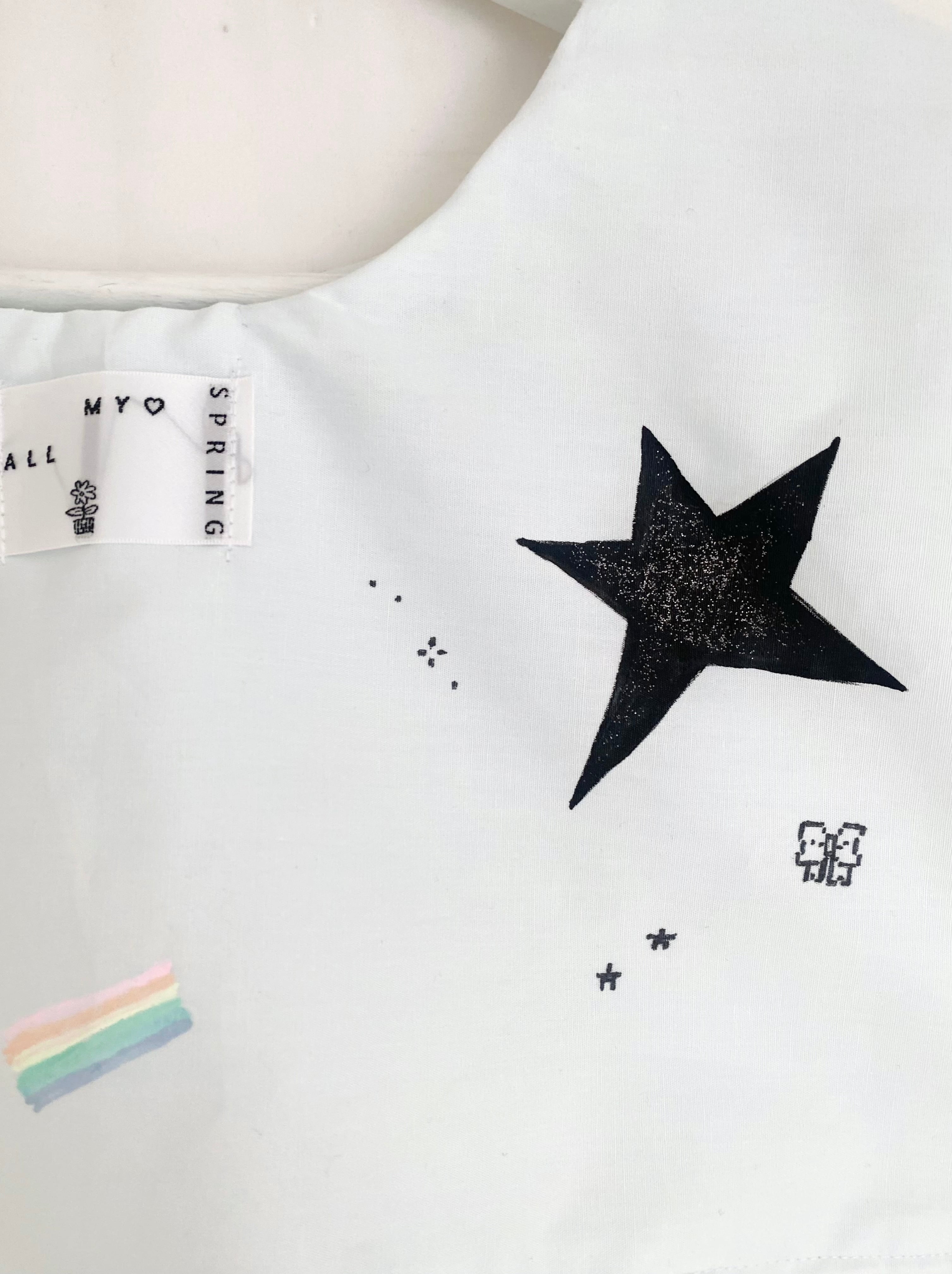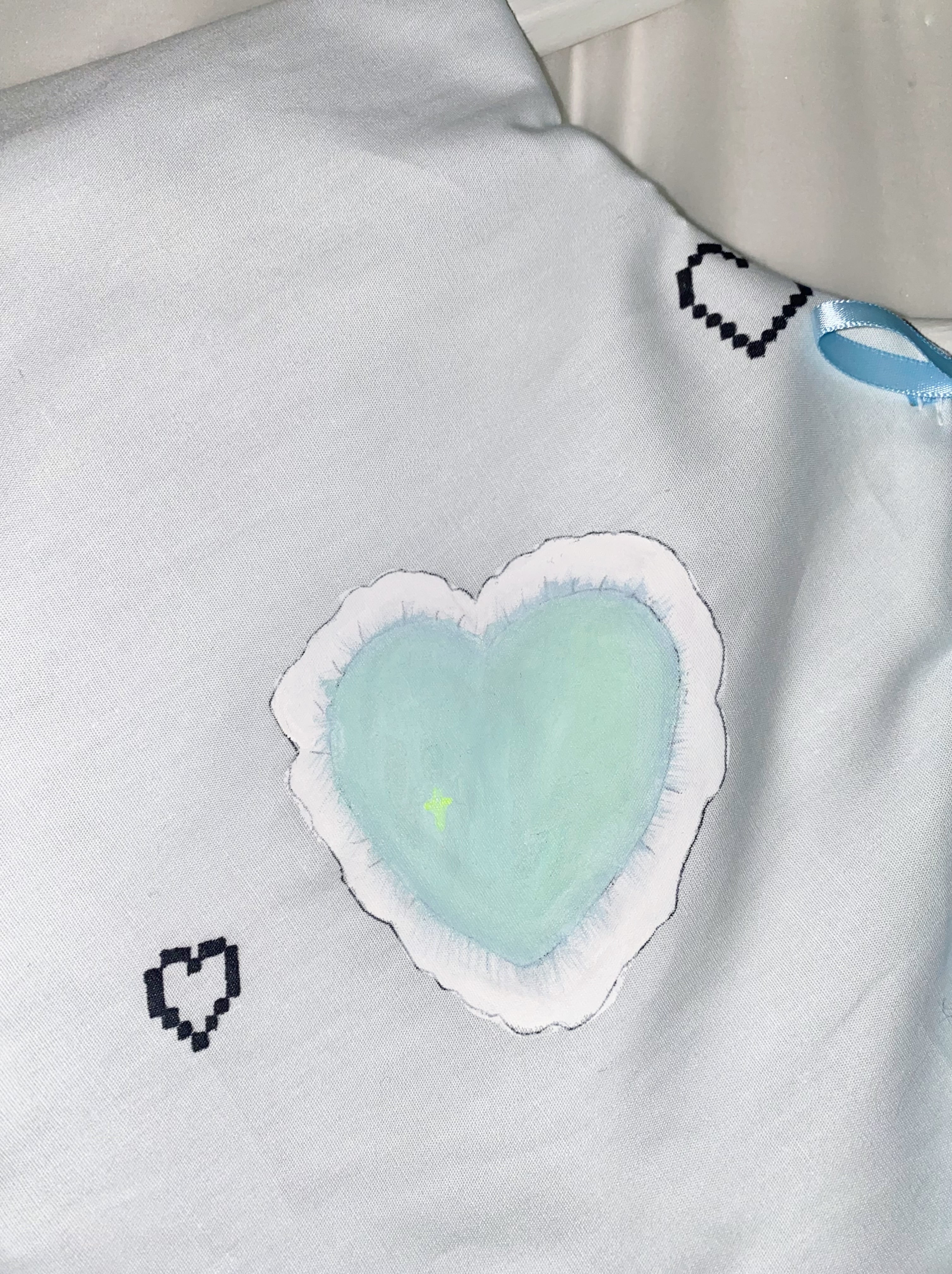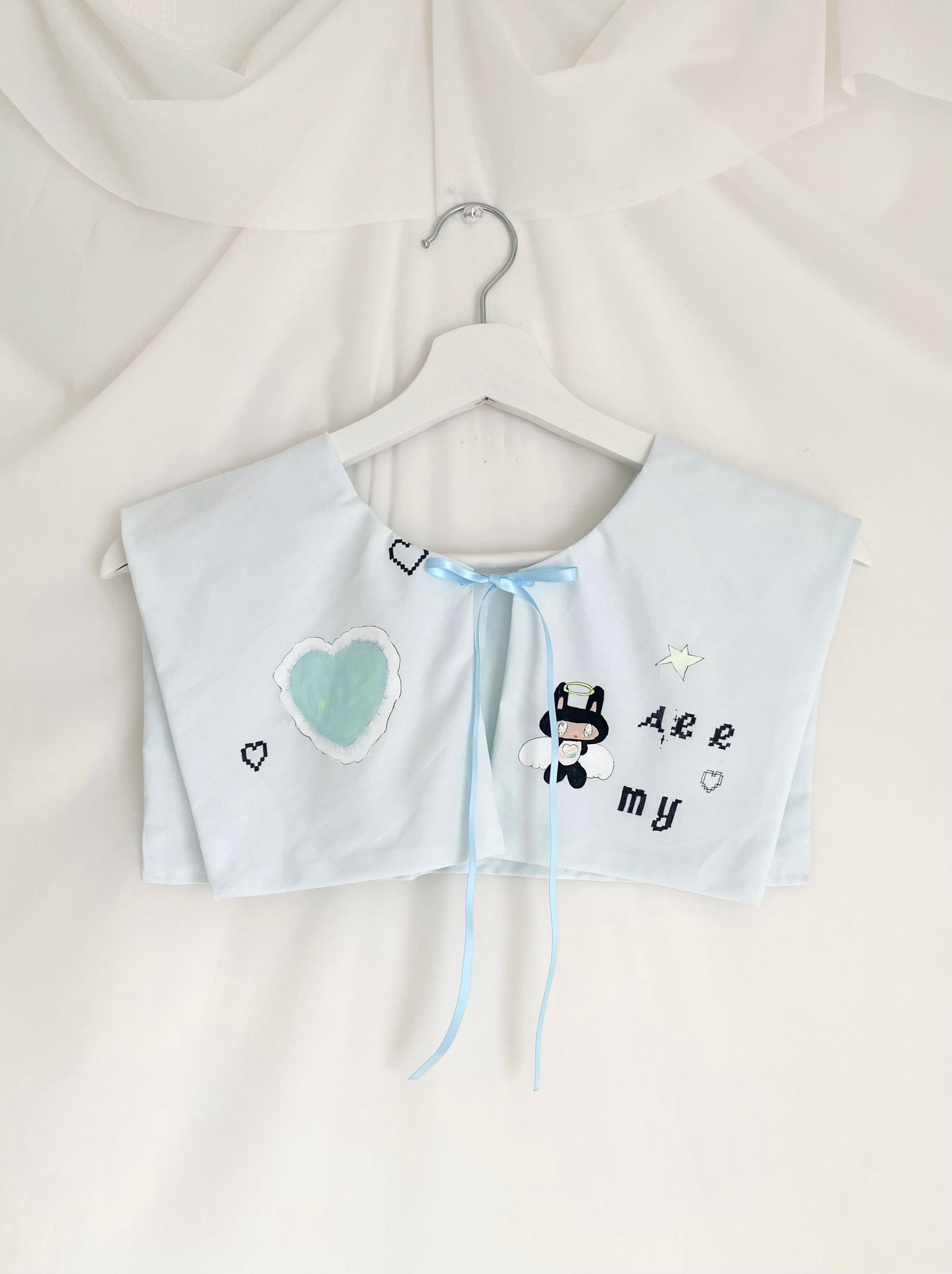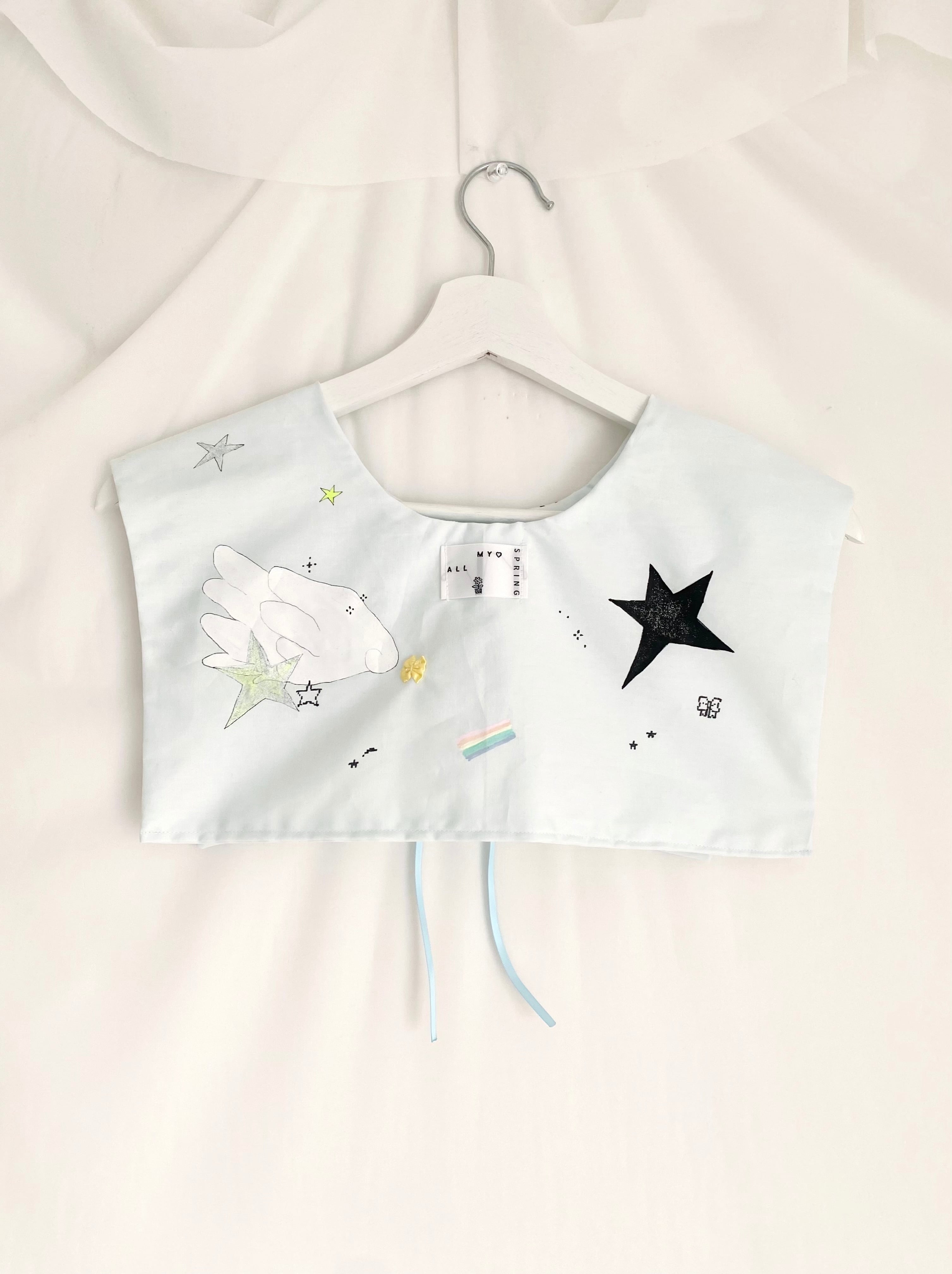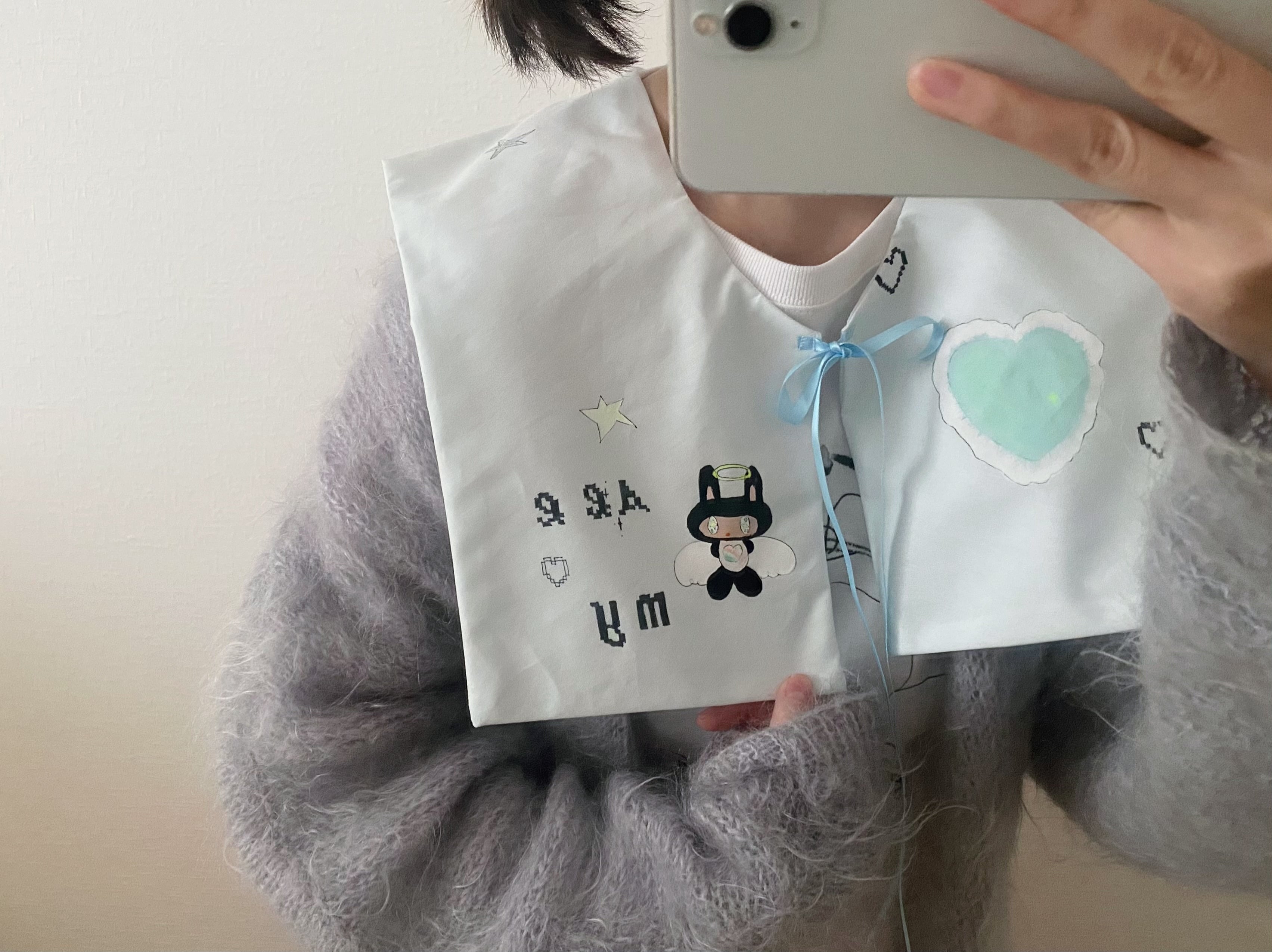 ペイントに使用した塗料は洗濯可能のものですが、生地とリボンが繊細なため手洗い推奨です。