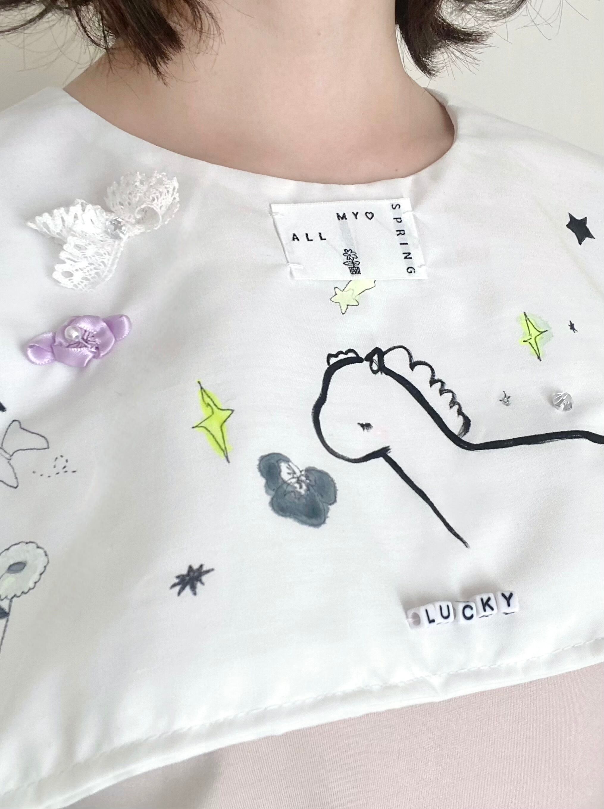 ハンドペイントでおだやかなnew yearを描いた一点もののつけえりです。