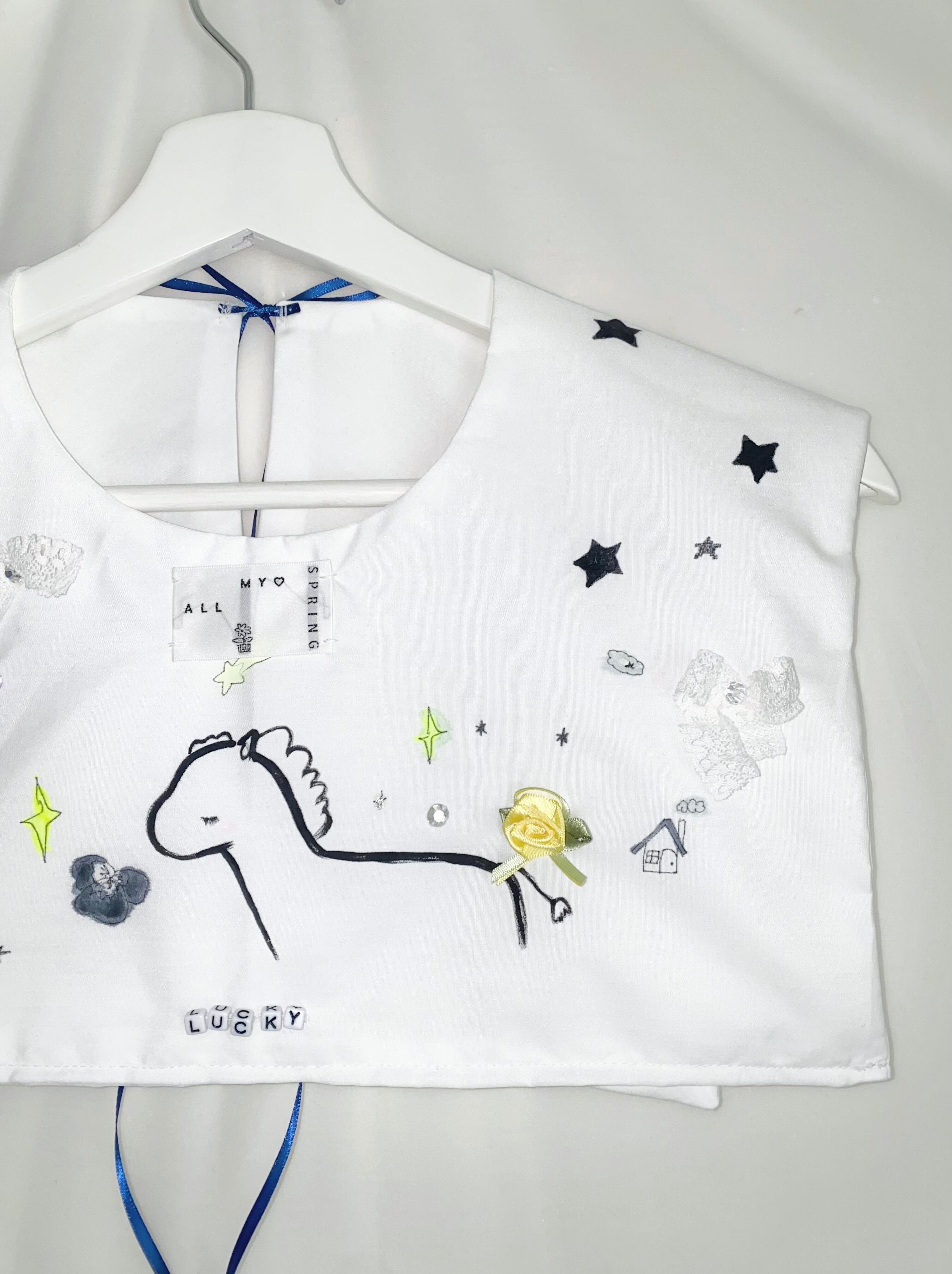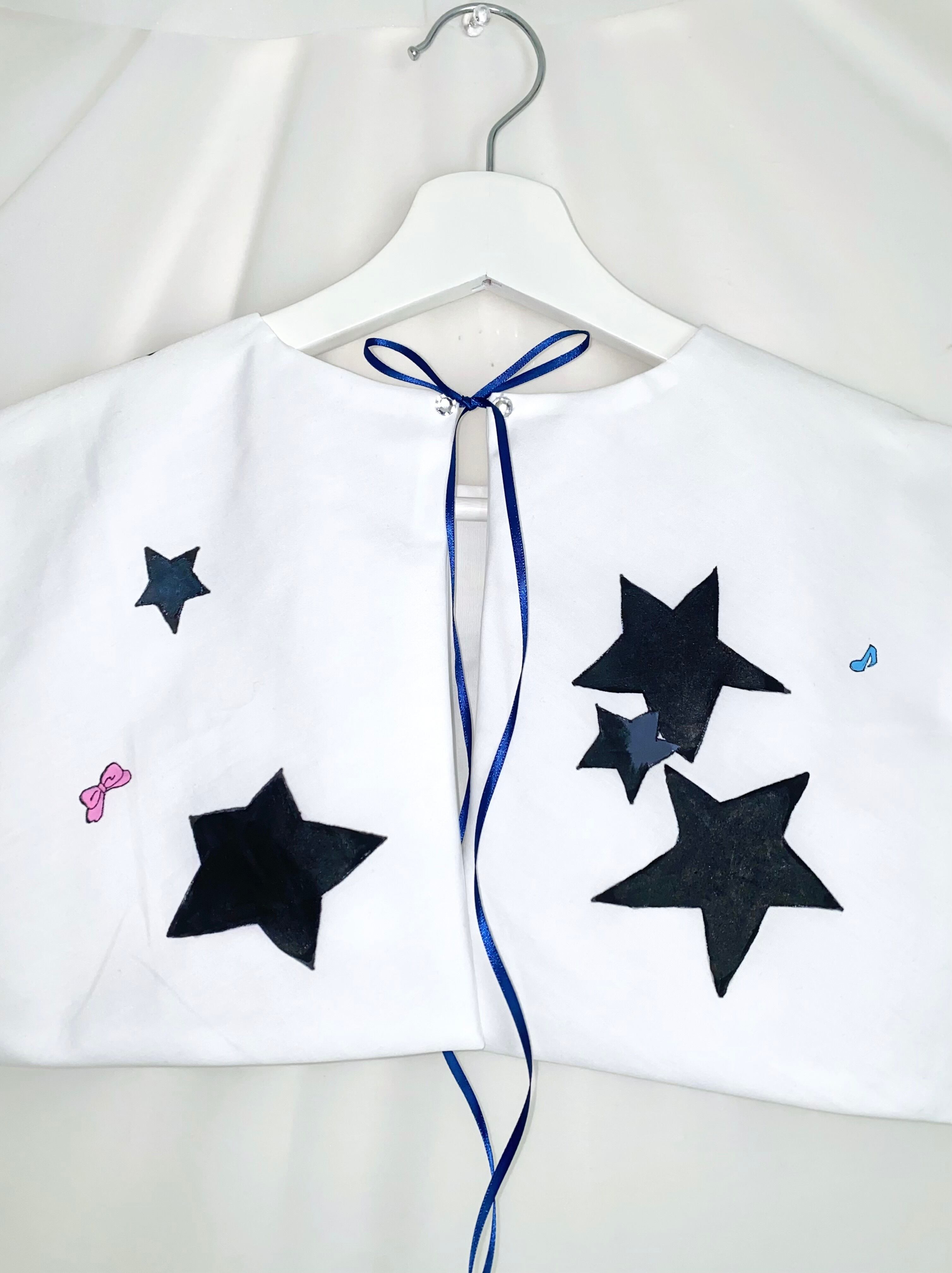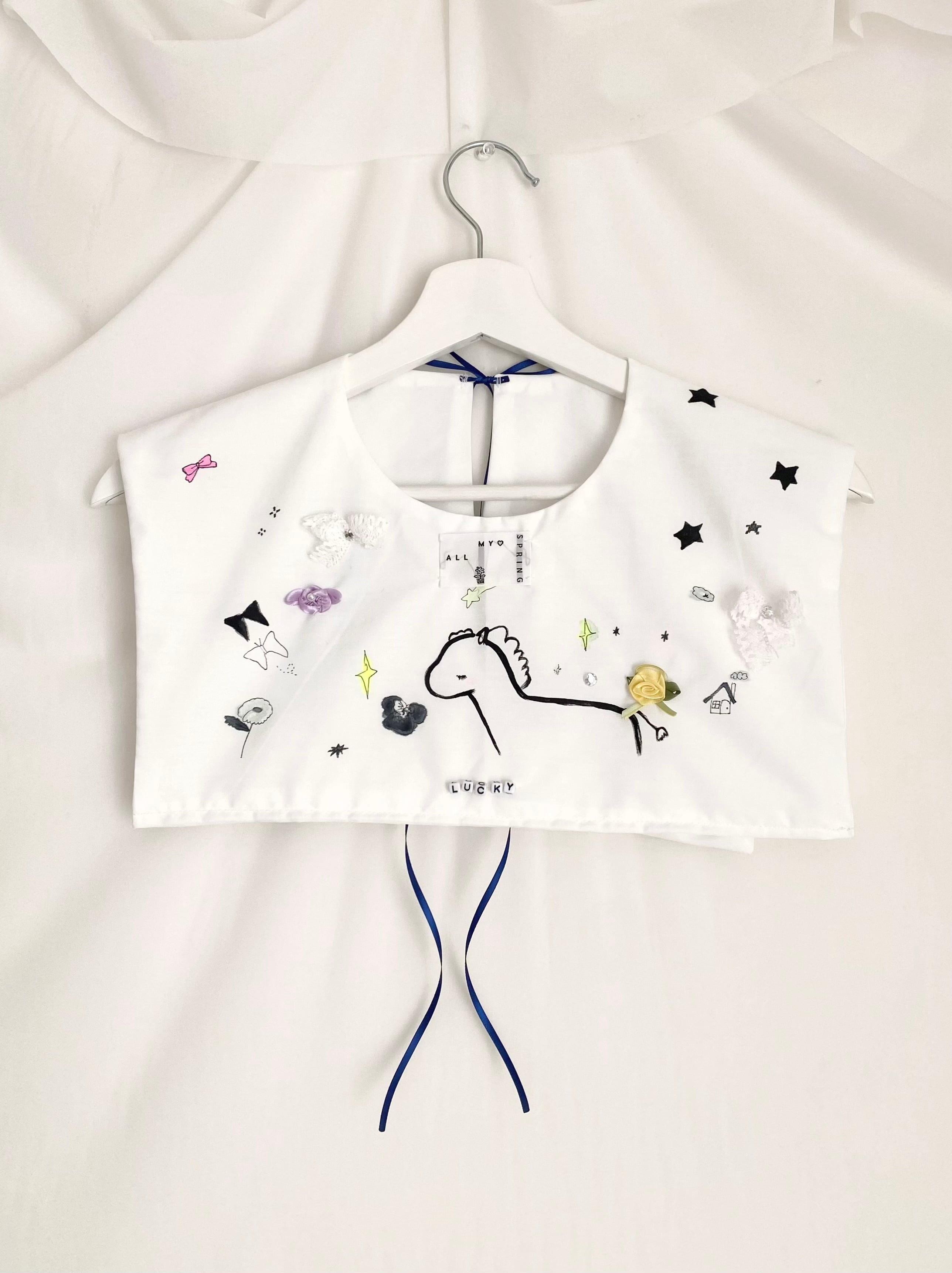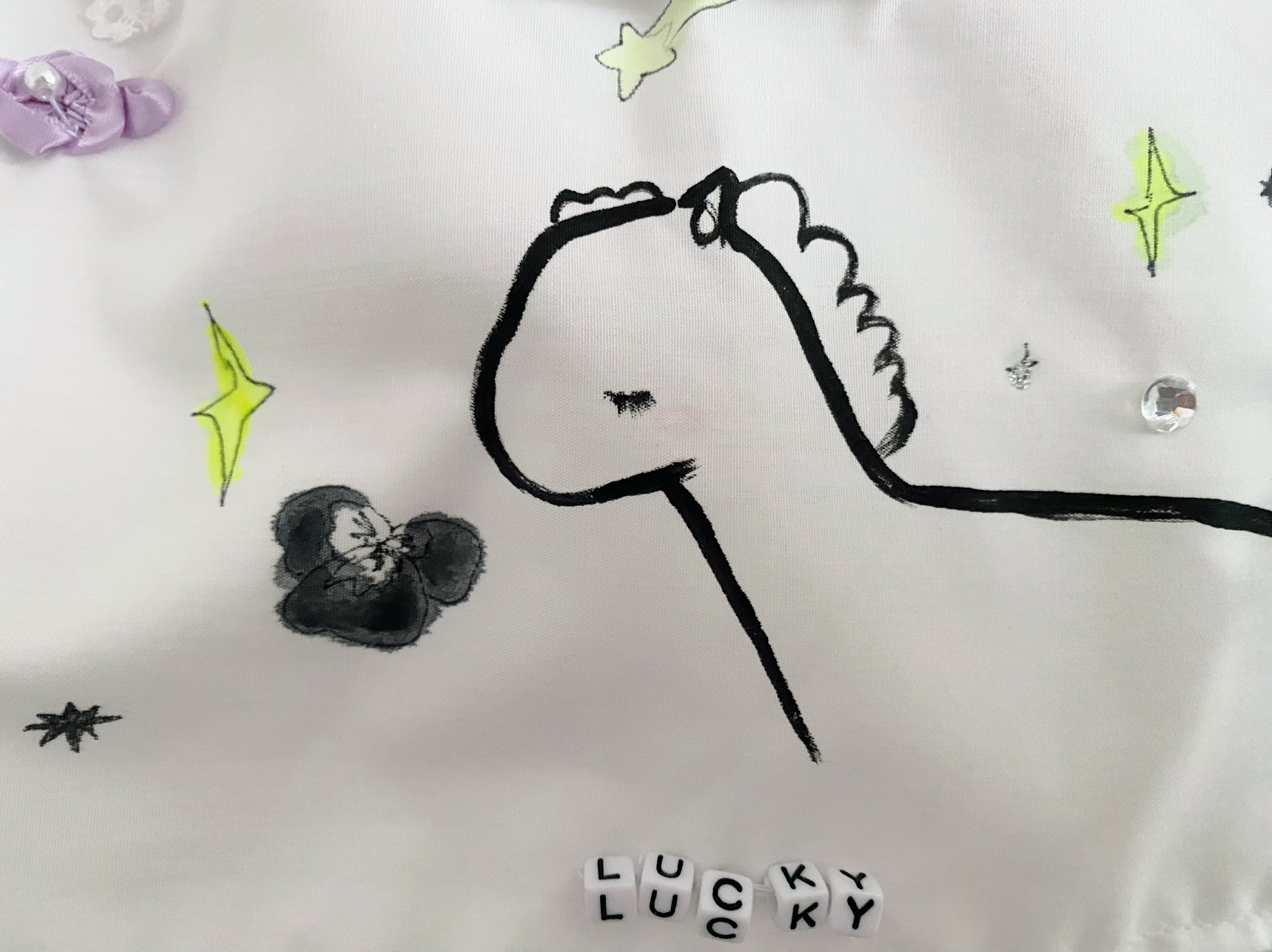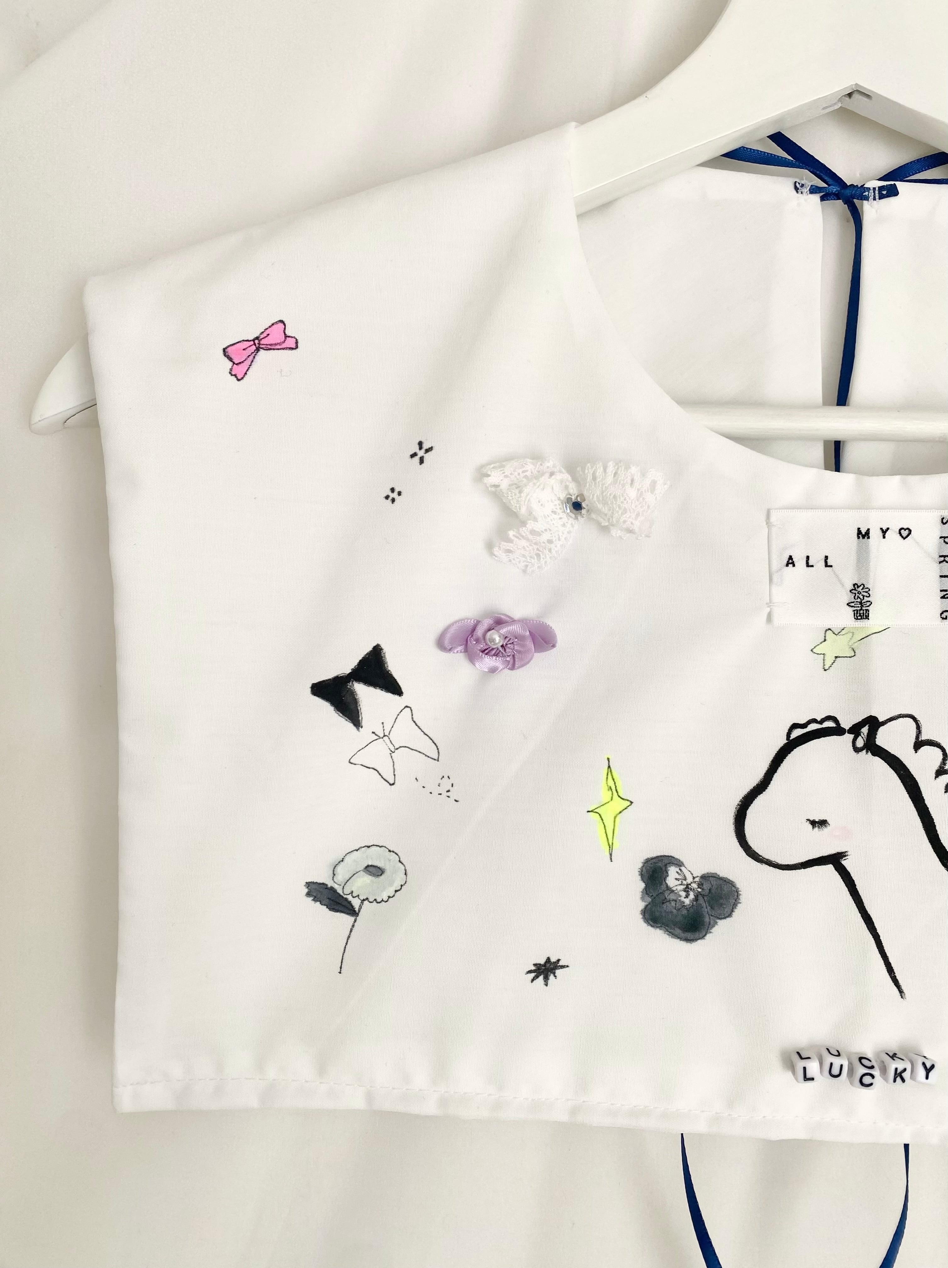 ペイントに使用した塗料は洗濯可能のものですが、生地とリボンが繊細なため手洗い推奨です。