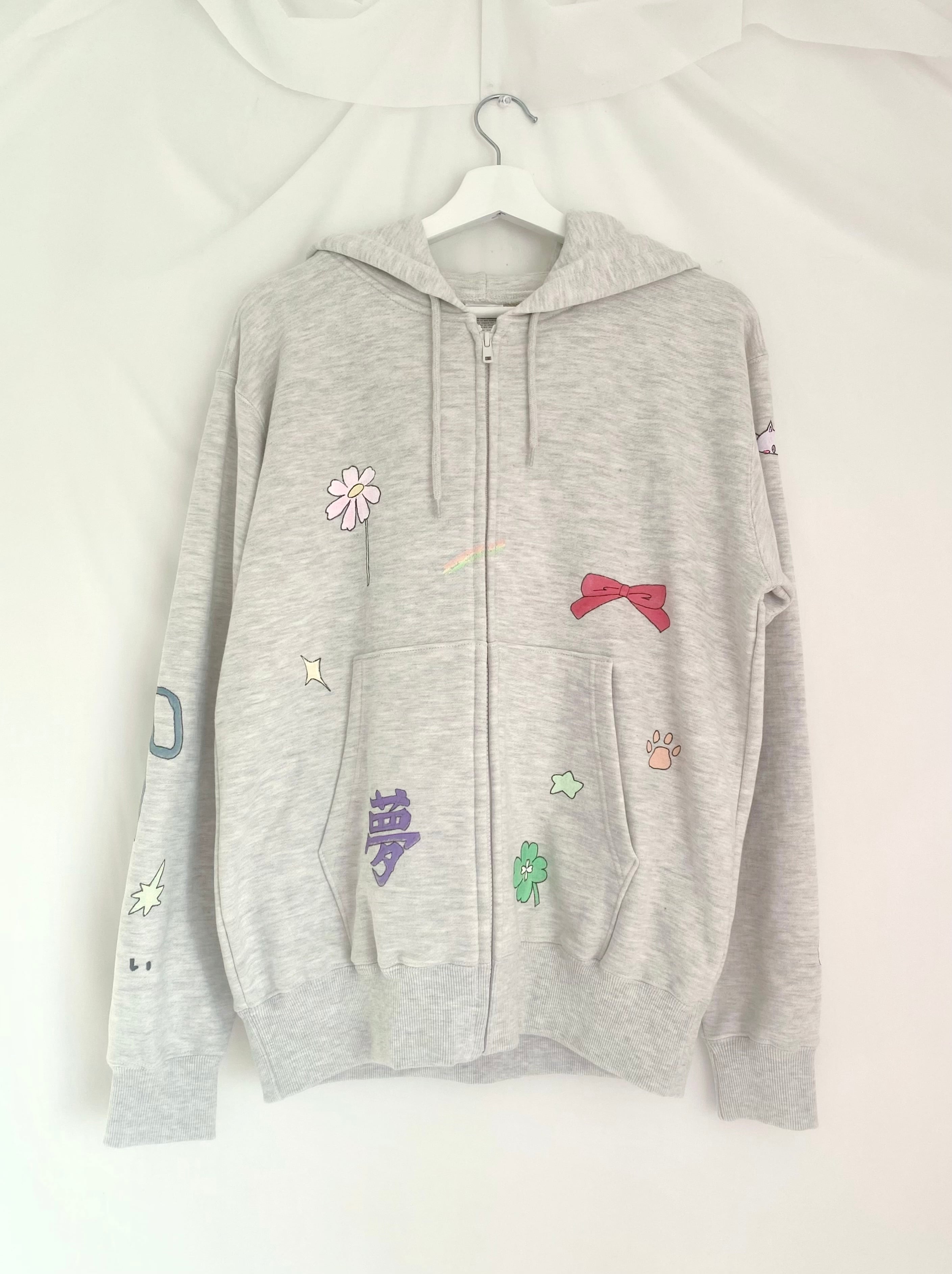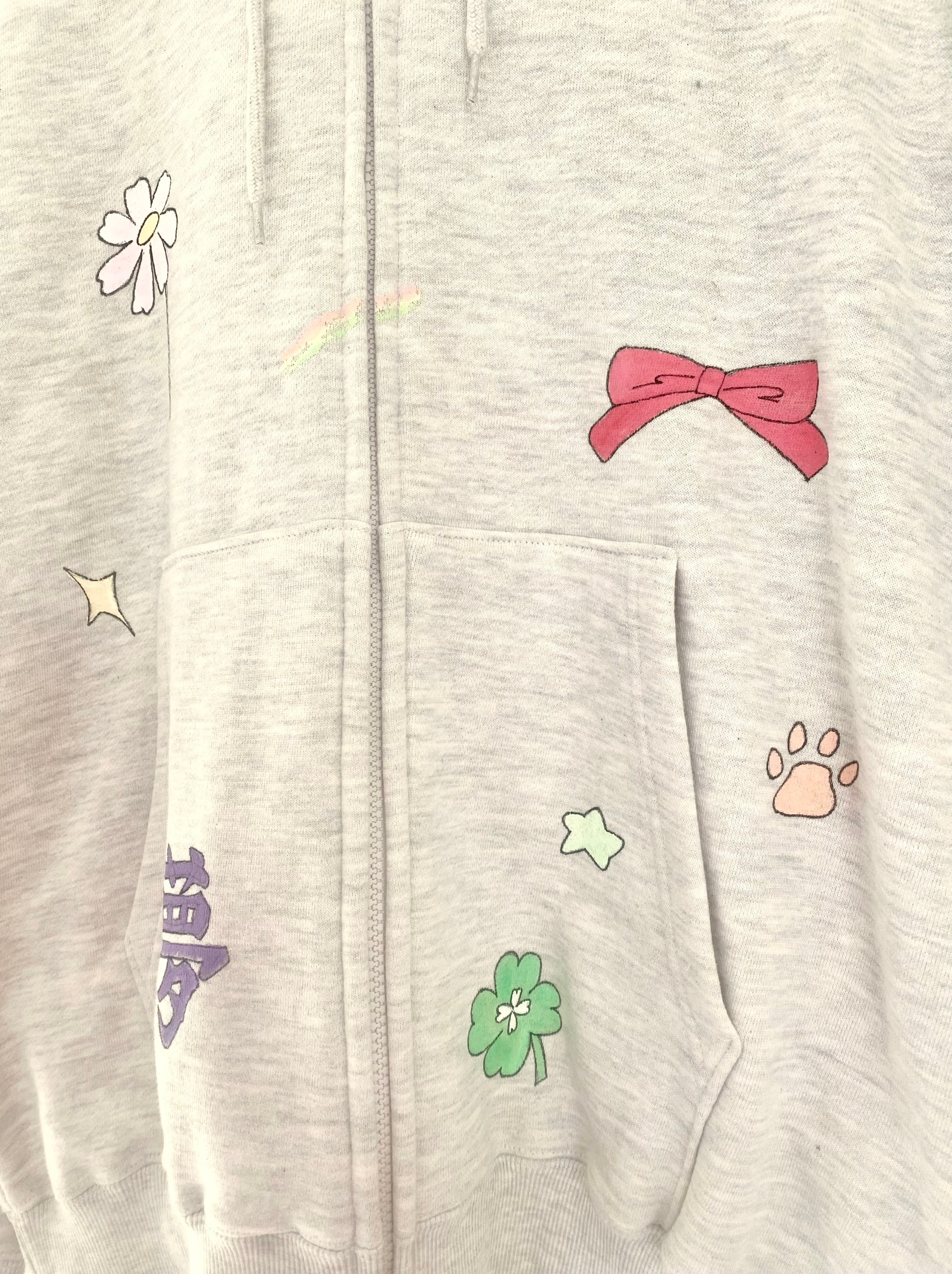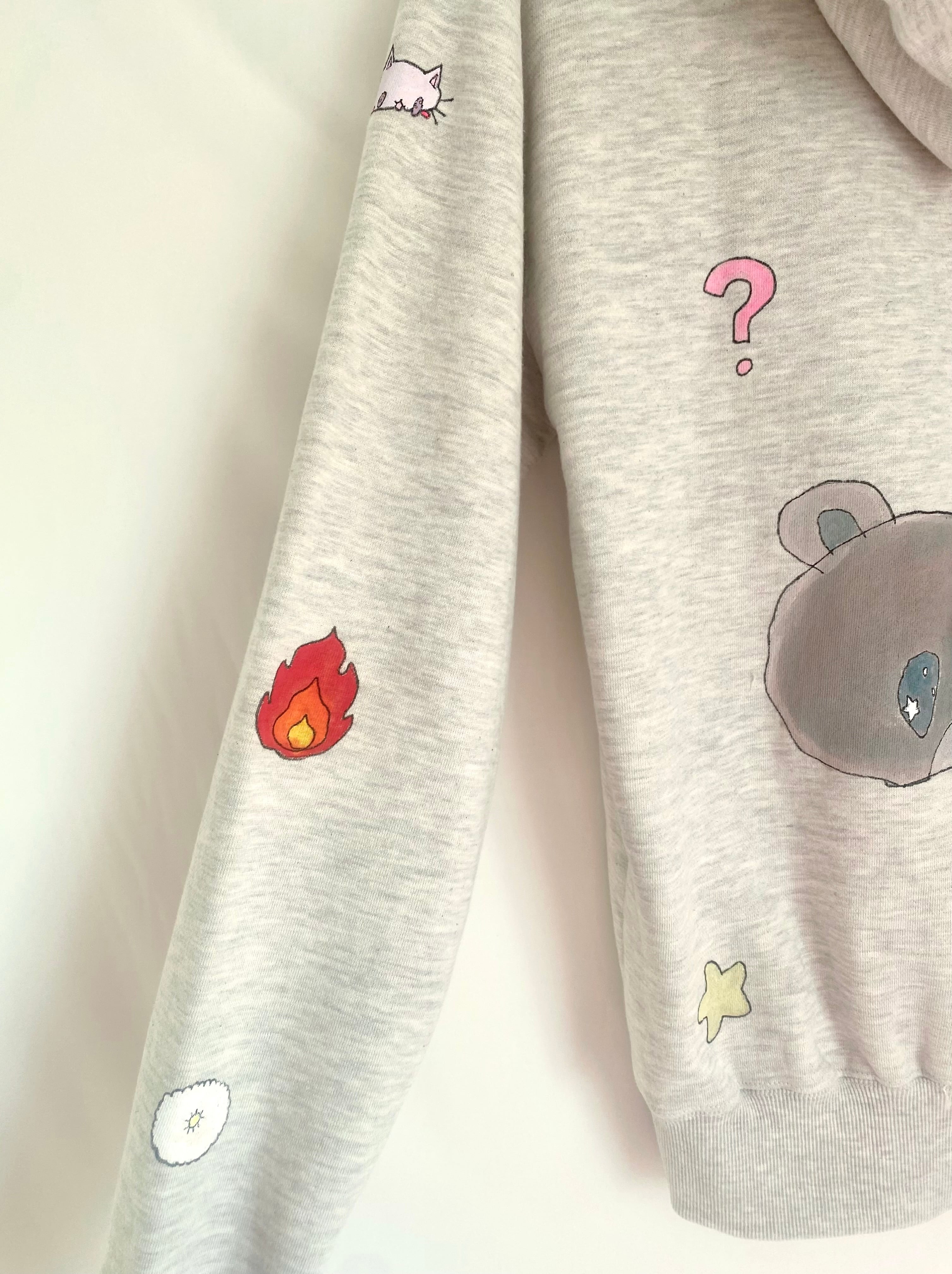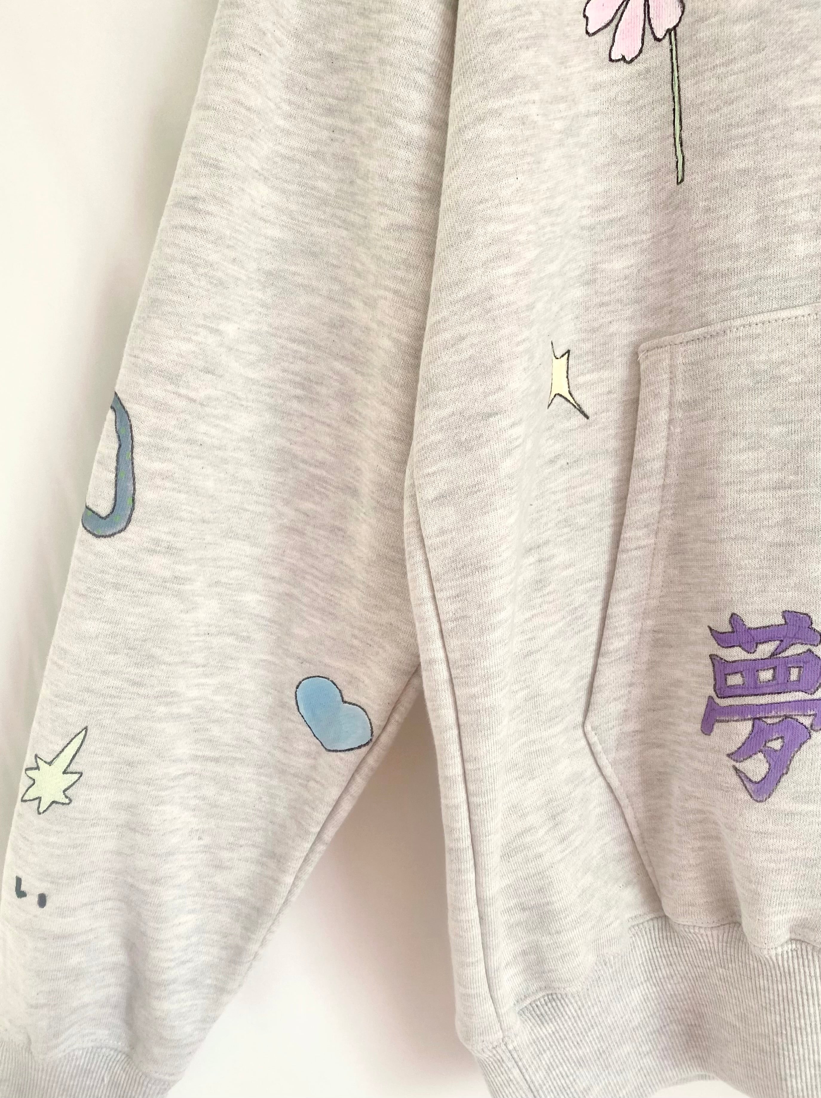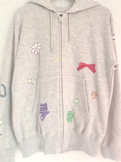 ハンドペイントをほどこしたフーディ。