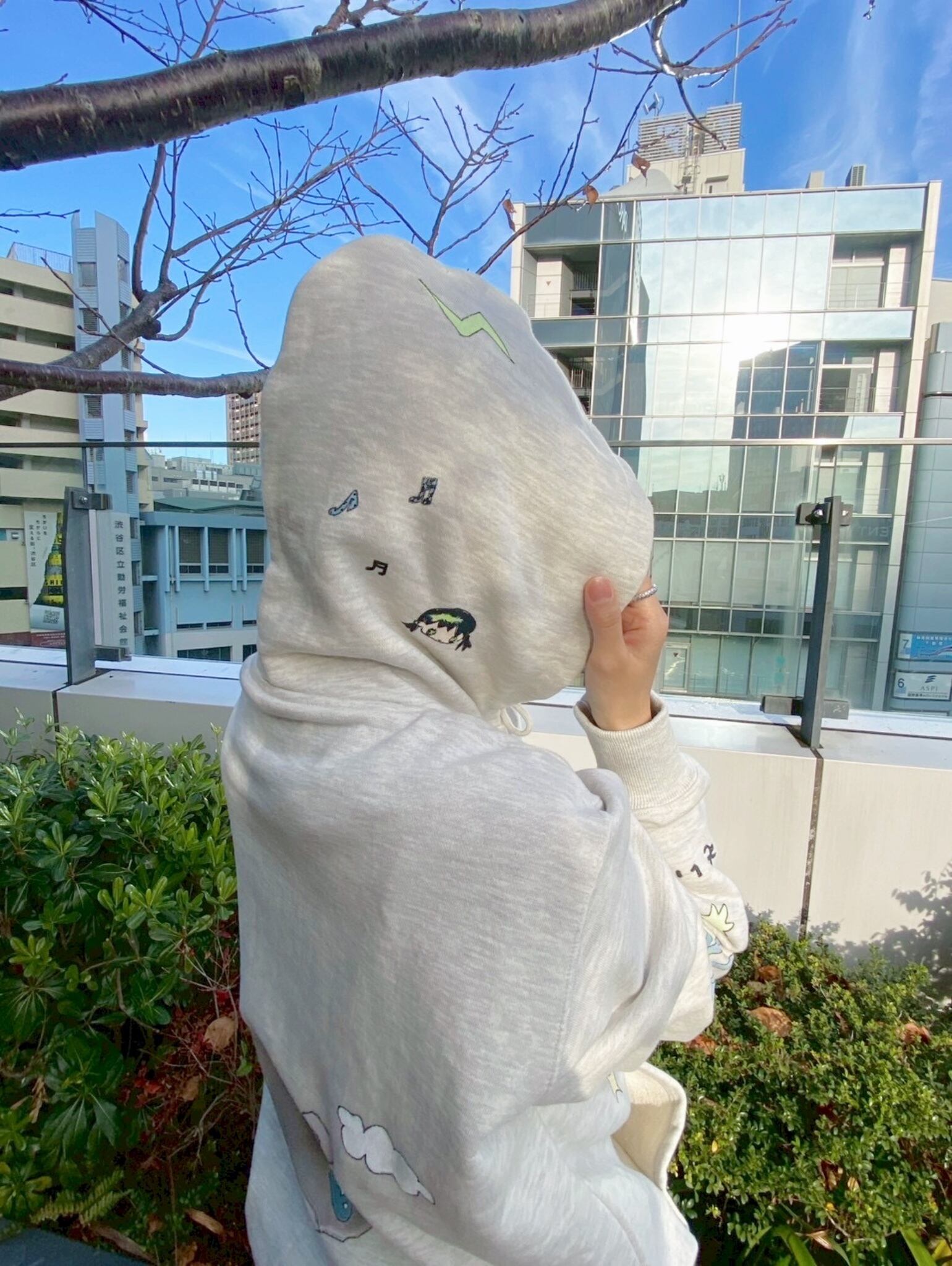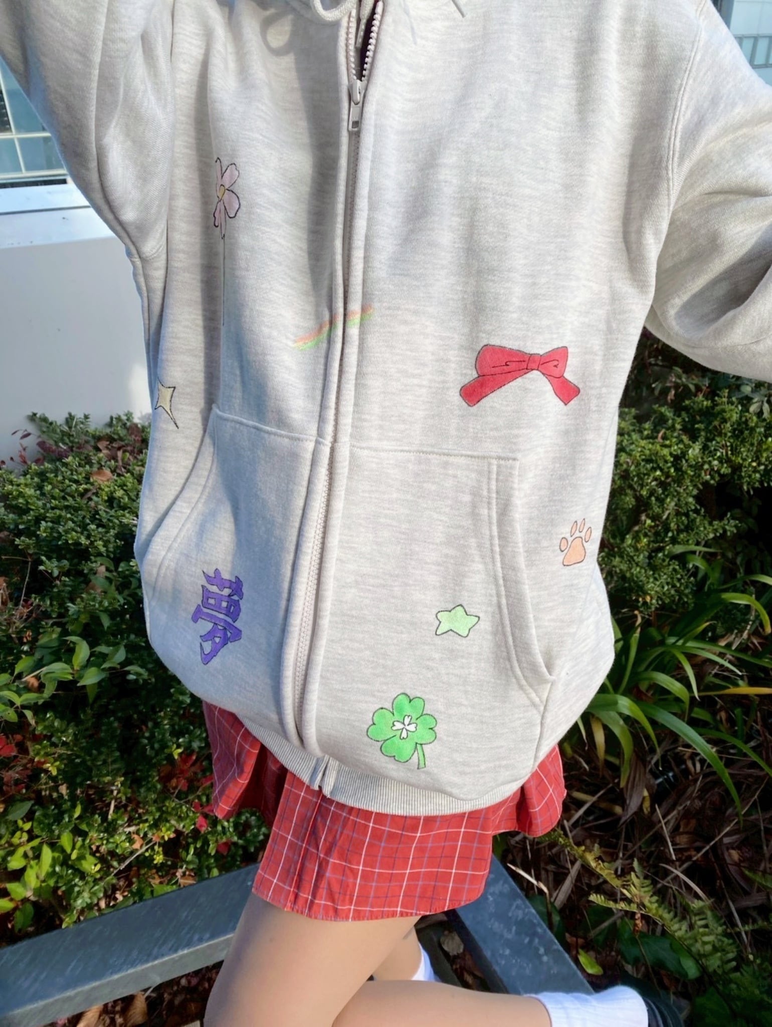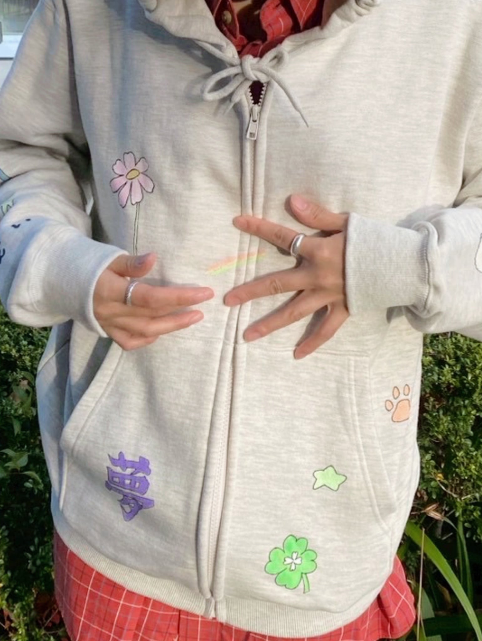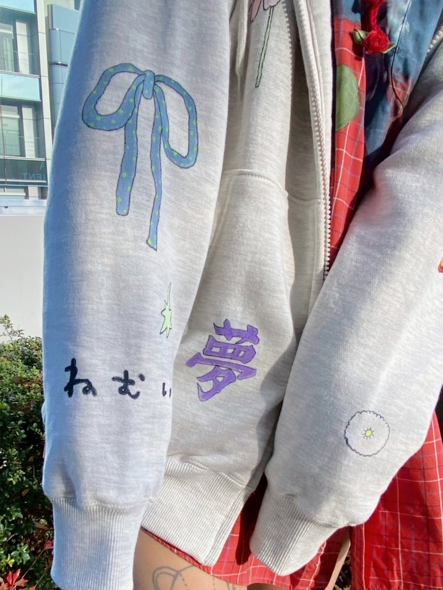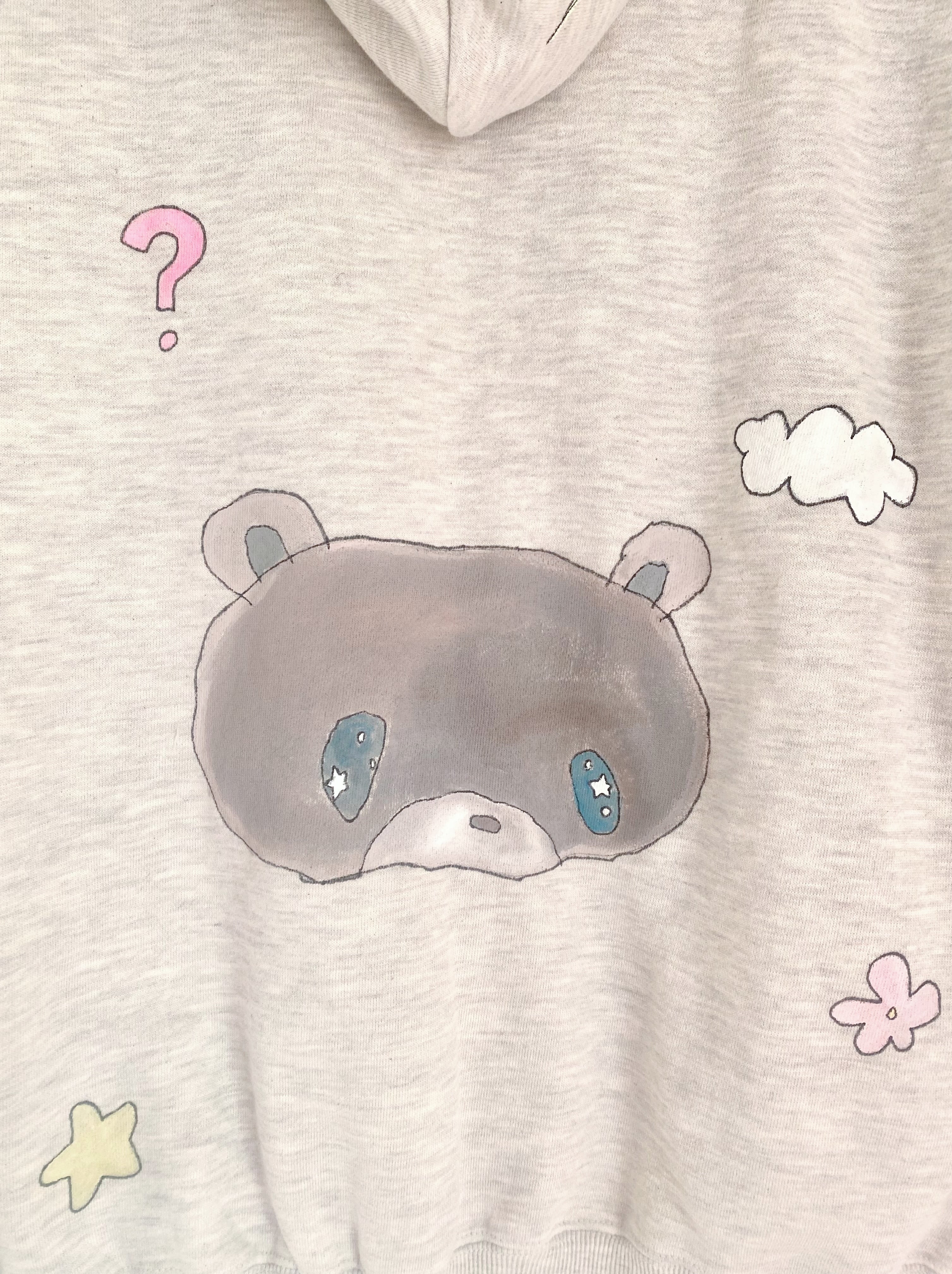 ハンドペイントをほどこしたフーディ。
