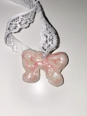 通したリボンを結んでチョーカーのように着用しても良いですし、お手持ちの他リボン、チェーン、キーリングチャームなどに付け替えて楽しく自由にお使いいただけます。